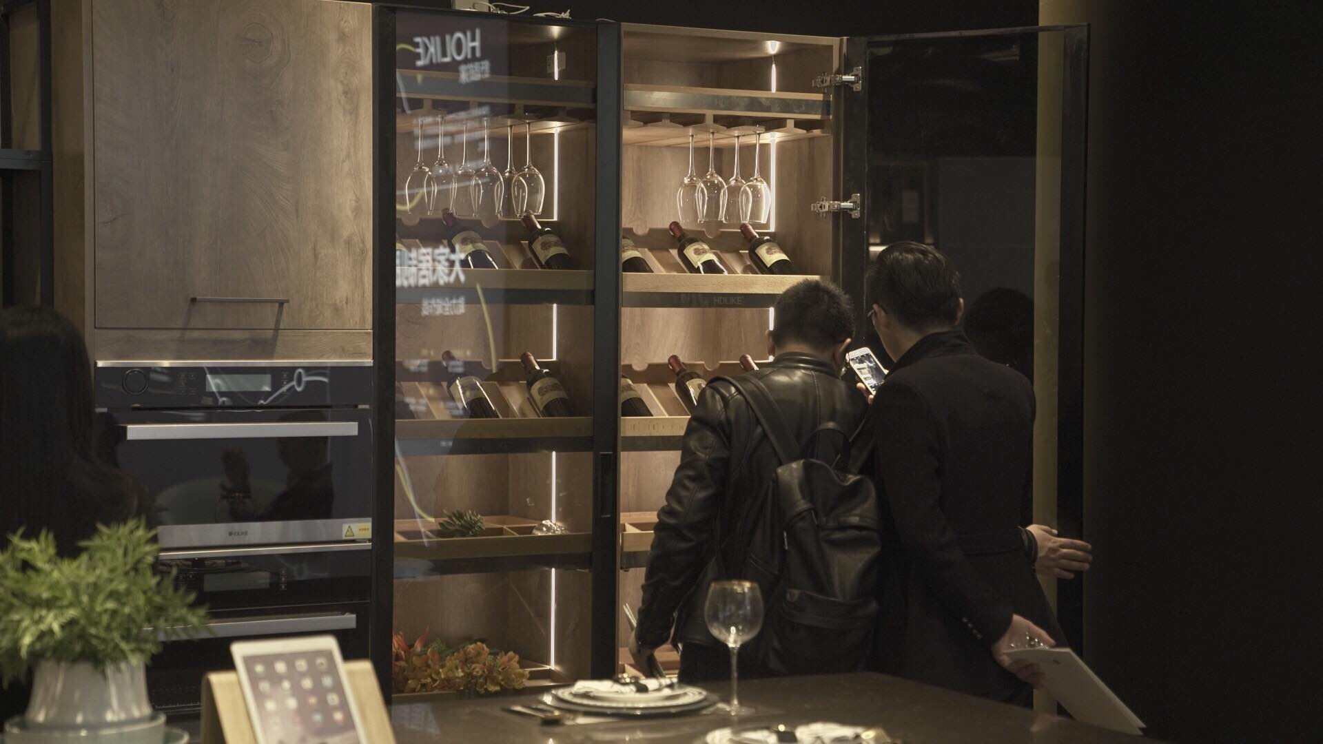 好莱客展馆设计以全屋定制T.O.P解决方案为核心,展示的是全新的家居体验感,在尽可能多样的基础上,赋予每个空间更多内涵与外延。同时动线和家居产品的设置使进来参观的人不仅是进入一个展示区,而是体验了一整个家居生态系统。