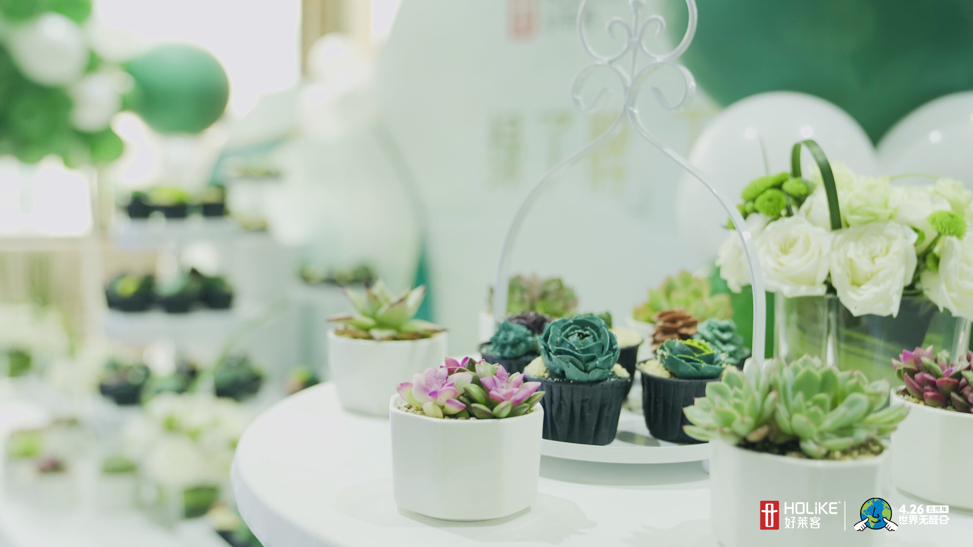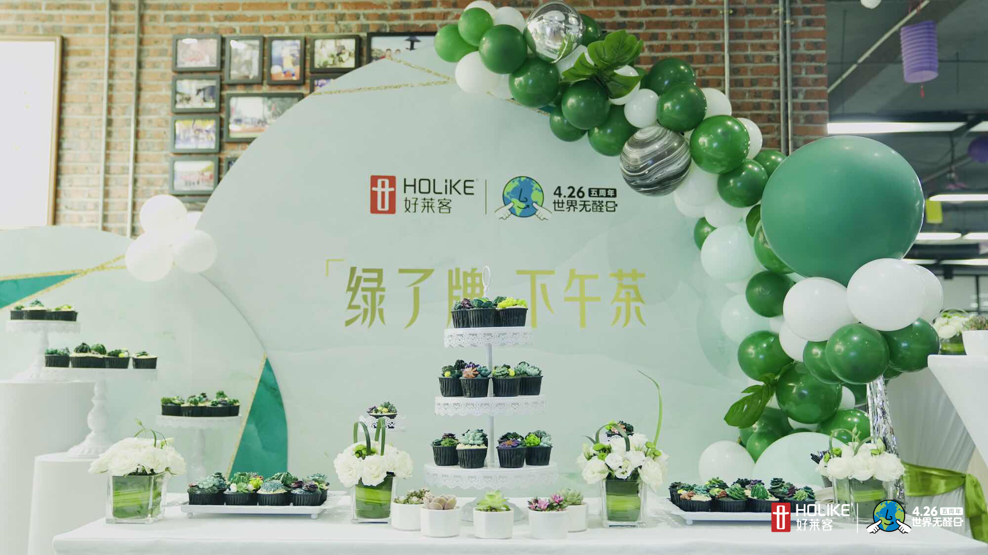 下午活动正式开始,好莱客公共区域晋升为INS风森系新打卡区,现场氛围布置以“环保绿”为主色调,创意十足的“绿了牌”下午茶,清新空气绿植专区,都是围绕绿色环保生活来布置,将世界无醛日所倡导的理念融入其中。