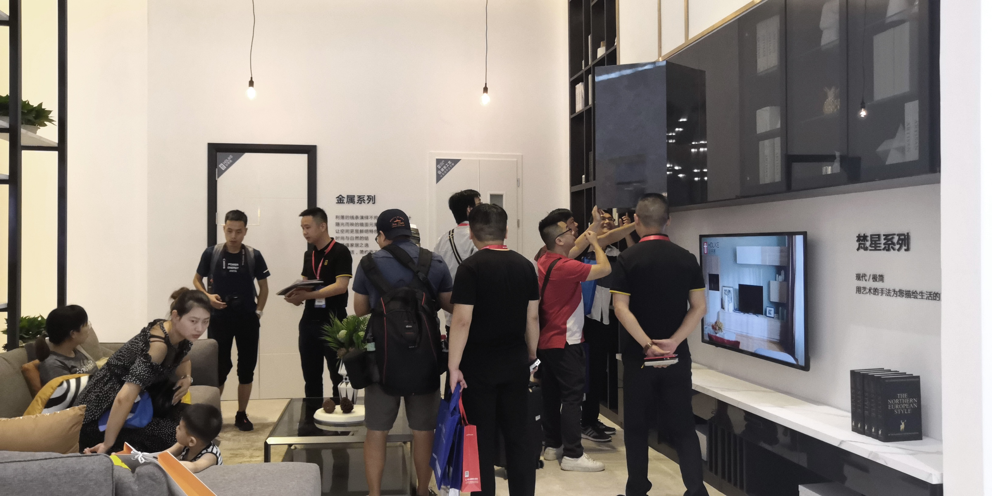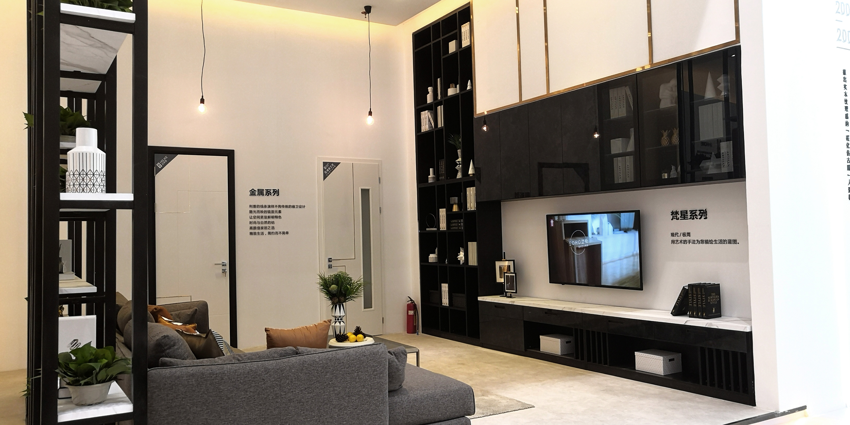 这次的展品是更加符合现代设计审美和消费需求的极简轻奢系列产品,2019年全屋定制新品“梵星极简系列”是本次展会的主推产品,该系列擅于运用不同材质之间的碰撞交融达到极致空间视觉体验,比如爱格板、玻璃、石纹等不同材质的运用。同时在研发上,更加重视形式美感和功能主义的完美平衡,为消费者带来低调沉稳的轻奢享受,以高颜值+高品质吸引了大批人群驻足拍照,更有消费者表示“这就是自己心目中家的模样”。