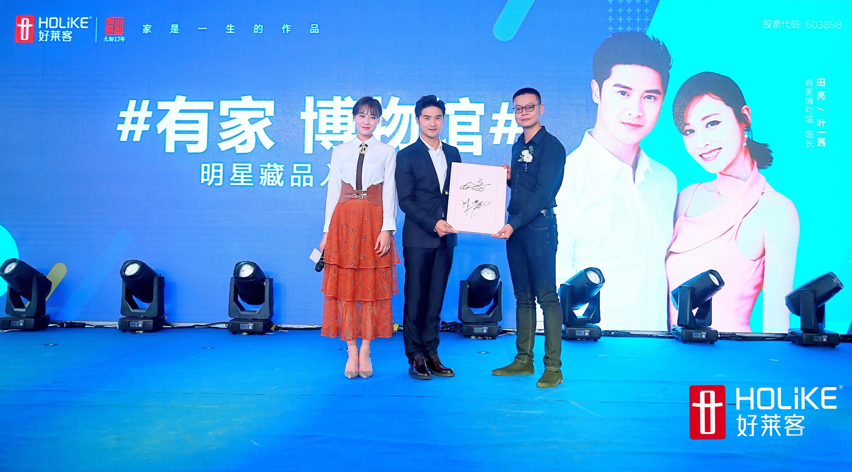 在神秘互动环节,夫妇二人亲自挑选了代表好莱客环保健康高度的明星产品原态板,亲笔写上对于家的寄语和祝福,作为代表家的一件作品,承载着田亮、叶一茜夫妇分享的爱家故事,入驻#有家博物馆#,为博物馆添上了最为浓墨重彩的一笔。