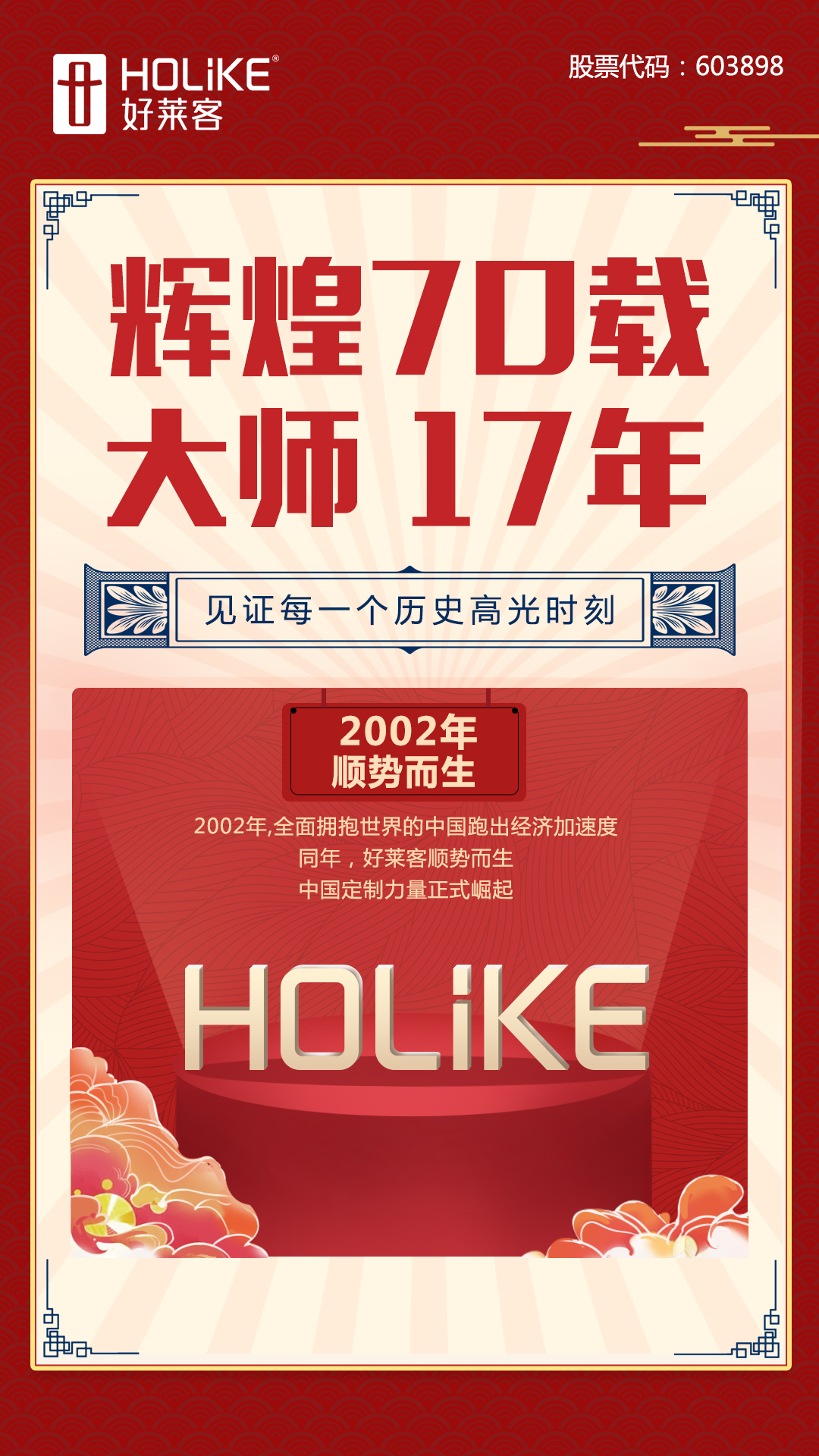 回首历史,我们既是时代的见证者,也是时代的参与者。定制家居大师好莱客,在17年的发展中,搭载着祖国发展的加速度,秉持着为消费者提供“舒适家”的品牌初心不断前行,成长为中国定制家居行业不可忽视的中坚力量。今天,让我们回溯历史,回忆、见证大师17年的每一个高光时刻。