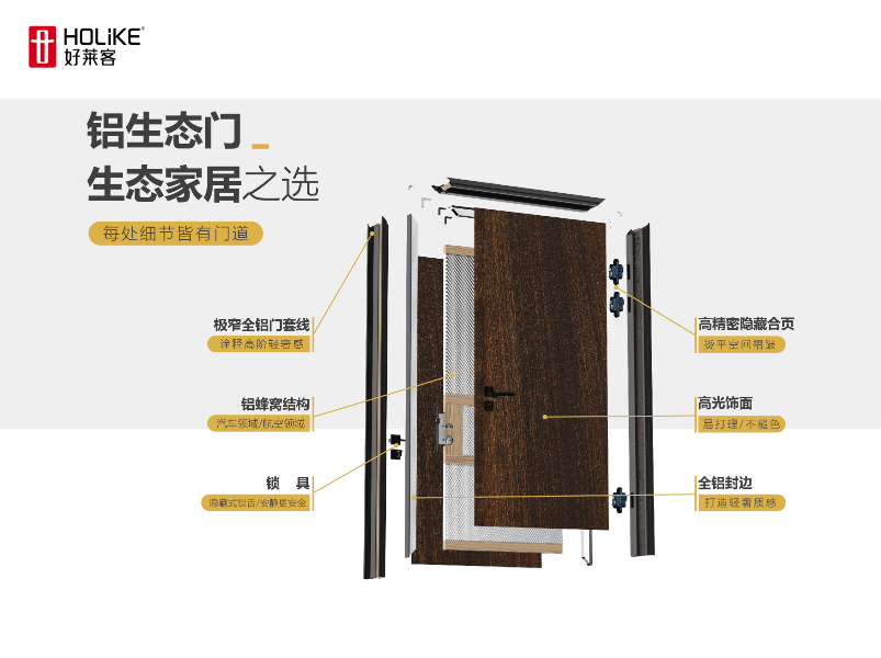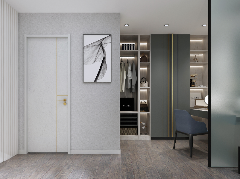 外饰面采用全铝门套线及铝封边,轻奢感极强,迎合市场潮流,成为现代轻奢家居室内门的首选产品。
