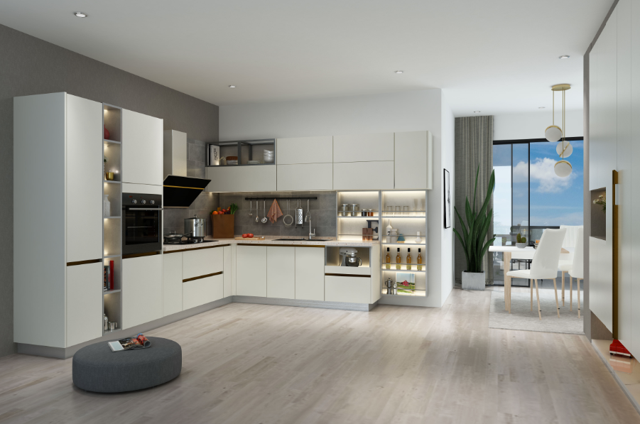 L型橱柜-将展示区、储物区、洗涤区、烹饪区科学划分,功能实用又不失设计美感。