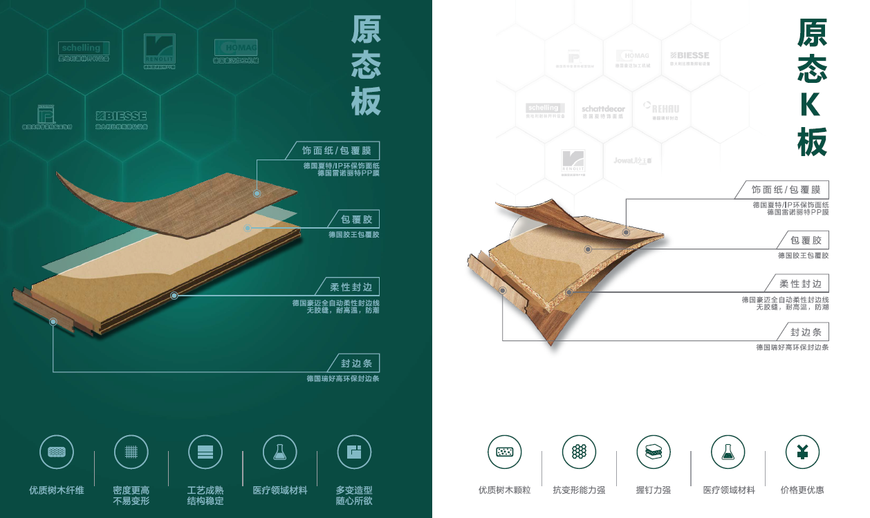 好莱客原态系列板材均采用MDI生态粘合技术,经过多年的环保实践和探索,配合全自动柔性封边,生产技术前沿、工艺成熟,好莱客凭借自身硬核实力为万千消费者家居环境安全保驾护航。