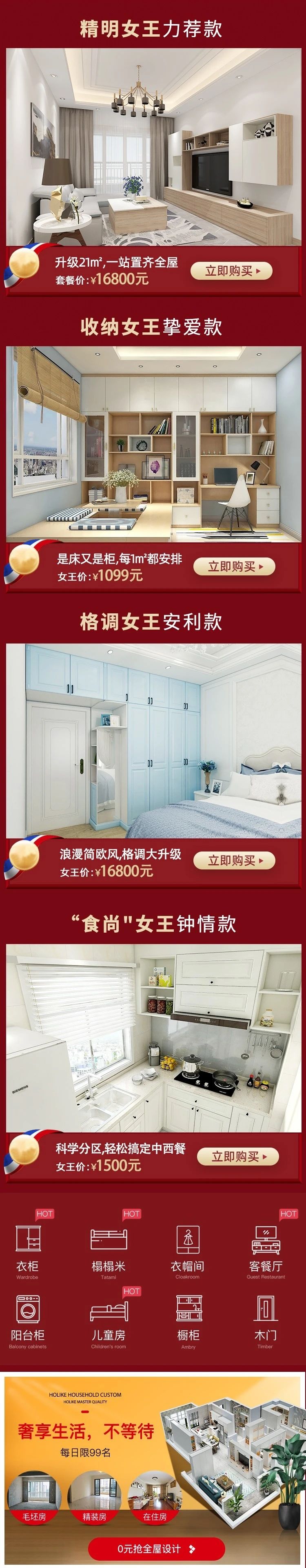 每个人都是自己的女王,好的家是女王的外衣,赋予女王不同的气场与精神价值。这个女王节,好莱客携手天猫旗舰店打造女王节专宠活动,邀你来定属于自己的居家女王范~还有更多惊喜福利,快上天猫【好莱客旗舰店】一起定制你的女王范吧~