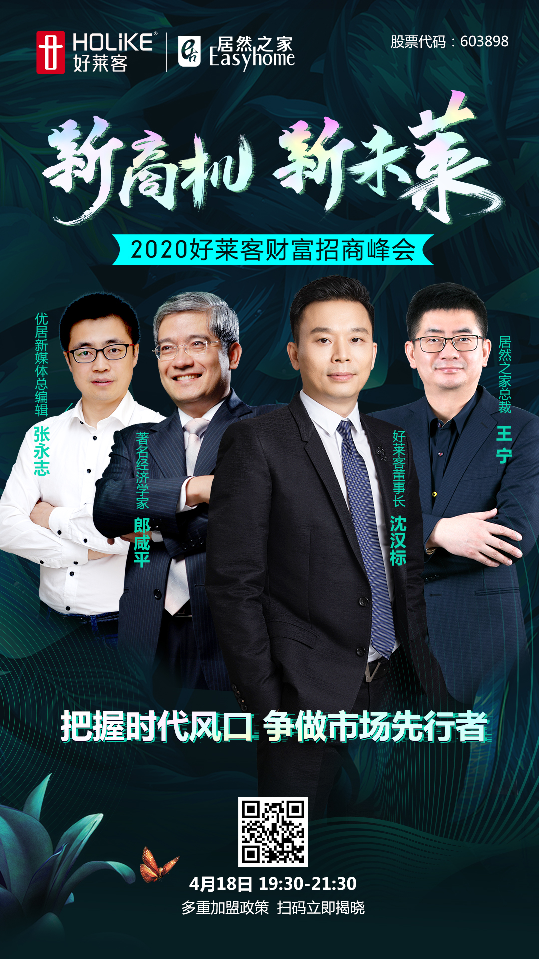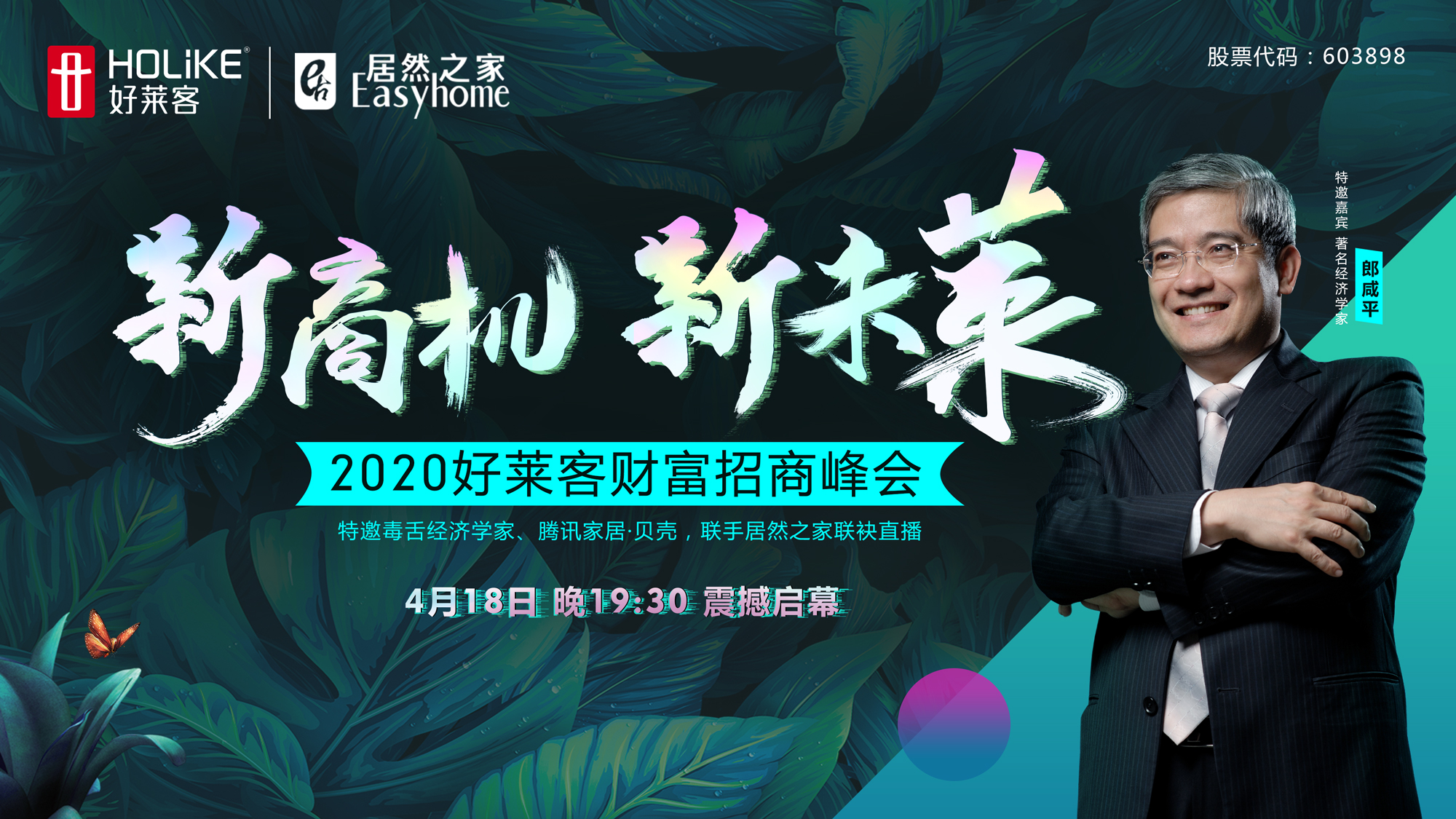 超优惠补贴、超重磅让利,一切尽在4月18日“新商机 新未莱”2020好莱客财富招商峰会揭晓。让我们线上共聚,共商下一个创富时代。