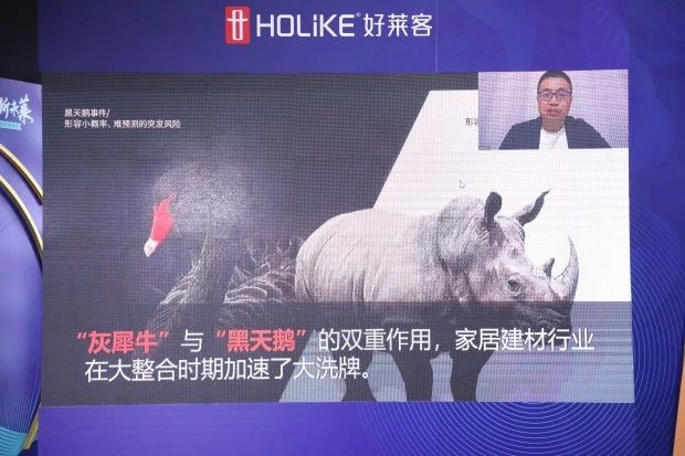 在会上,张永志先生,根据其多年来的经验积累,指出“灰犀牛”与“黑天鹅”的双重作用下,家居建材行业在大整合时期加速了大洗牌。家居行业的“灰犀牛”指的是,自2017年房地产步入下行与深度调整的“新周期”以来,2018年,下游家居产业链显现新特征,市场迎来拐点,从增量竞争转变为存量竞争,从总量竞争转变为结构性增长。机会主义的市场要素已不复存在,但存在结构性增长的机会,比如现在消费升级下的智能家居,或全屋定制领域品质高、服务好的企业,同时,在未来能够提供集成家居的企业拥有很大的机会。这也是包括以好莱客为代表的全屋定制企业,向大家居和集成路线发展的核心原因。在这样的一个市场下,行业达成了普遍的共识:家居行业增量增长的机会主义时代结束,企业靠水涨船高式的自然增长逻辑终结;由卖方市场转入买方市场,企业必须转型靠自身高质量经营取得可持续性的发展。因此“灰犀牛”背景之下,家居行业的整合、洗牌在未来5年将是常态化。