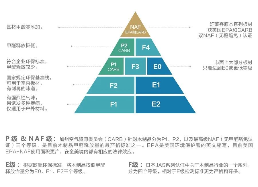 美国加州空气资源委员会(CARB)认证是全球关于复合木制品的甲醛释放量的严格标准,加州空气资源委员会针对木质复合制品分为三个等级,分别为P1、P2,以及NAF等级。