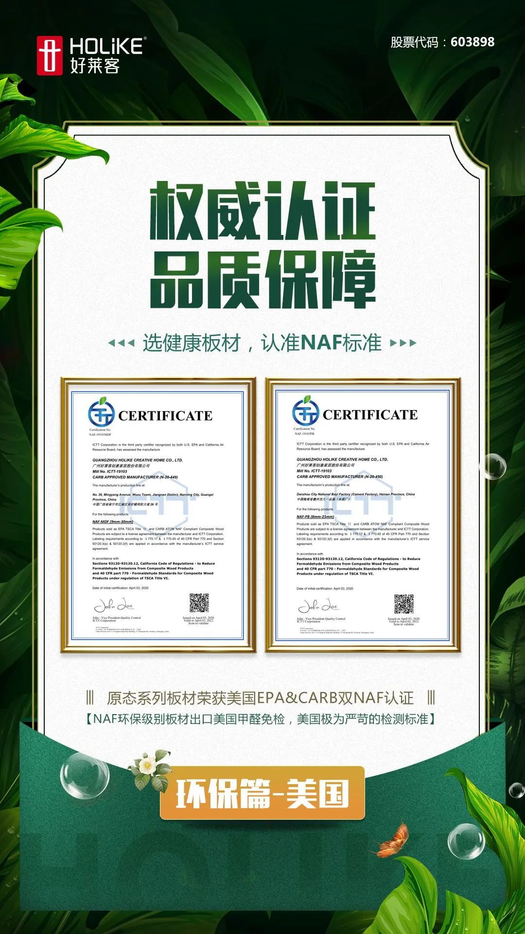 NAF无醛豁免认证是美国加州空气资源委员会颁发的认证标准中目前极为严格的认证标准,高于CARB认证中的P1、P2的认证标准。目前全球仅有十几家工厂的板材能够通过这个严苛的检测,能够通过的也是现有的高级环保板材,原态系列板材正属其中。