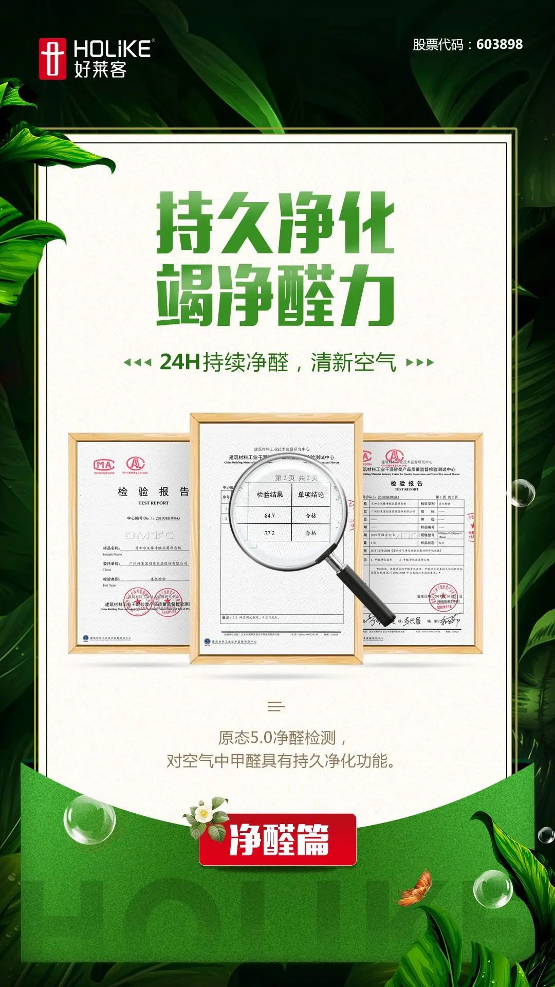 不同机构的检测标准和方式各不相同,好莱客原态系列已经通过中国、美国、日本和瑞士等多国检测标准。对于原态系列而言,环保不仅仅止于检测标准,而是为了打造更健康的家。全新原态5.0时代,具备三重保障,由板材基材环保升级为空间环保 。