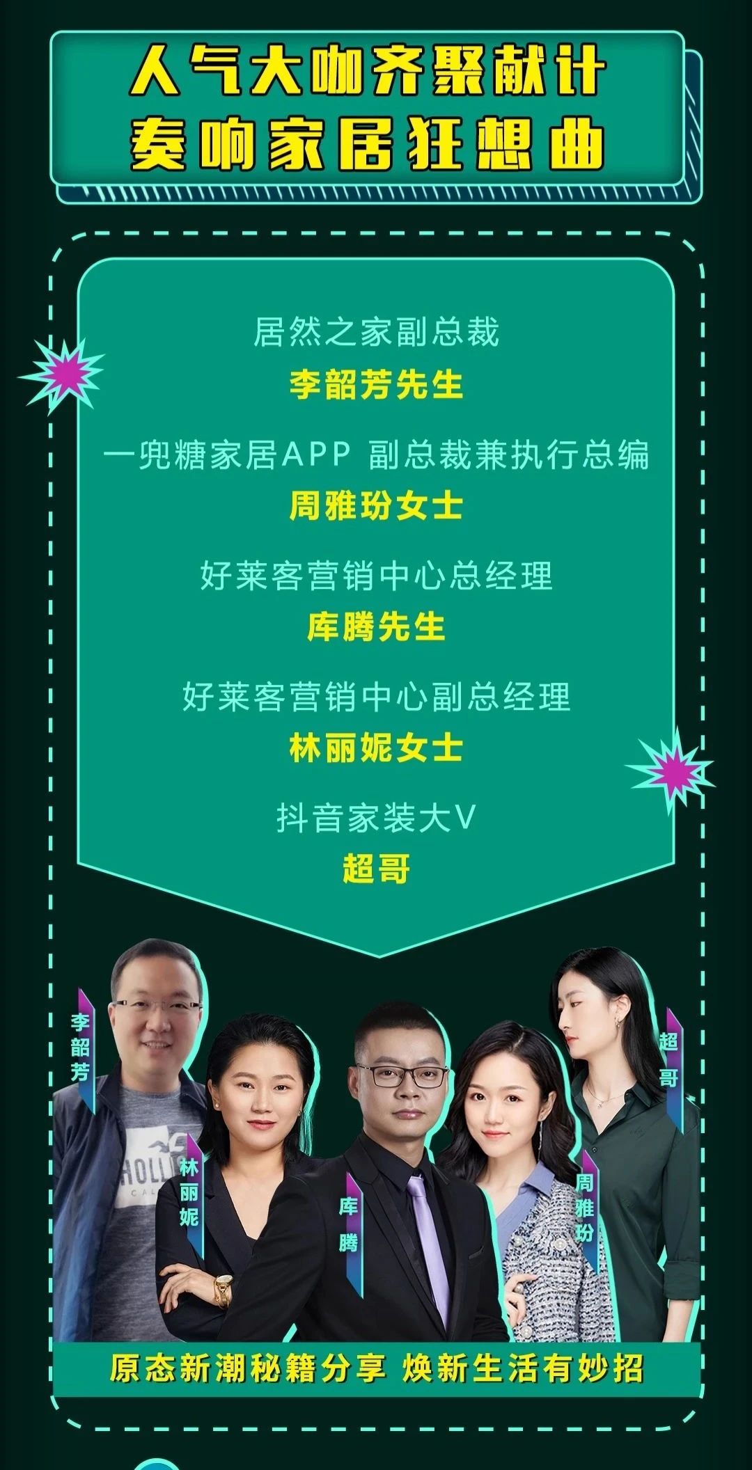 作为新晋带货王牌,王祖蓝这次又将带给全国观众怎样的欢乐与精彩?联合居然之家,如何解锁当下健康居家环境奥秘?协同权威家居媒体一兜糖APP,未来健康生活应该是如何?此次好莱客直播间,关于潮范家居新主张的“十万个为什么”,各路大咖将会为我们一一揭晓亮相!