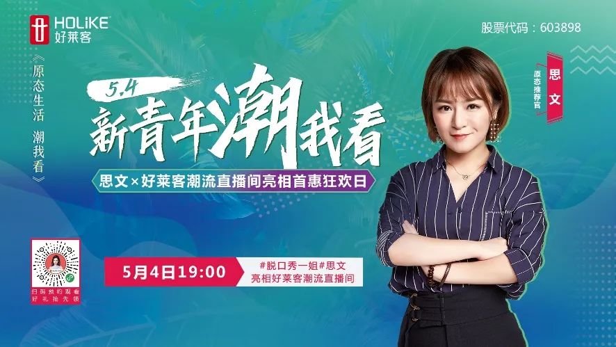 5月4日,正值青年节,好莱客延续潮生活理念,打造#新青年,潮我看#主题直播,特邀脱口秀女王、独立女性代表——思文亮相好莱客潮流直播间,打开新青年的潮生活方式。