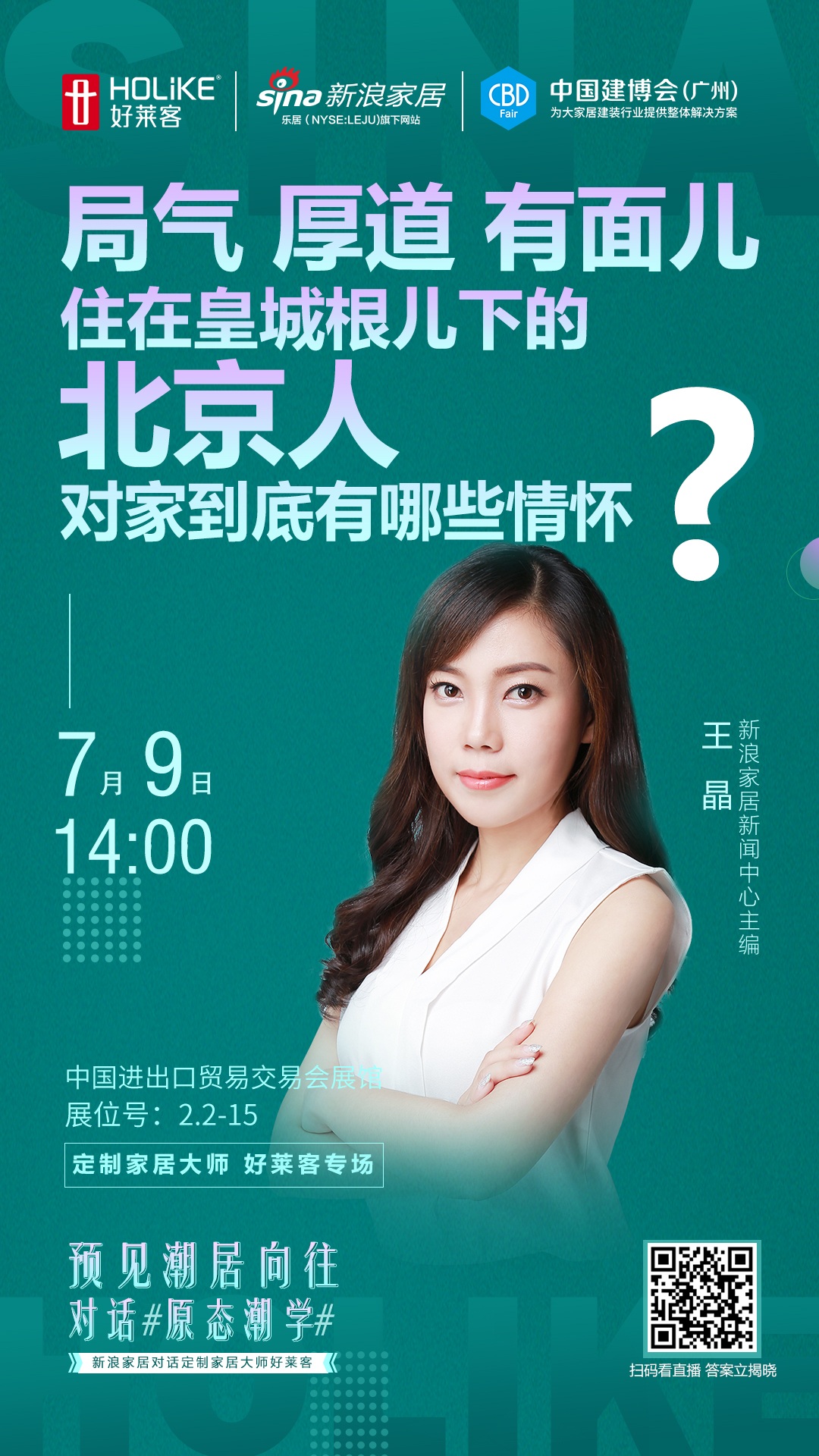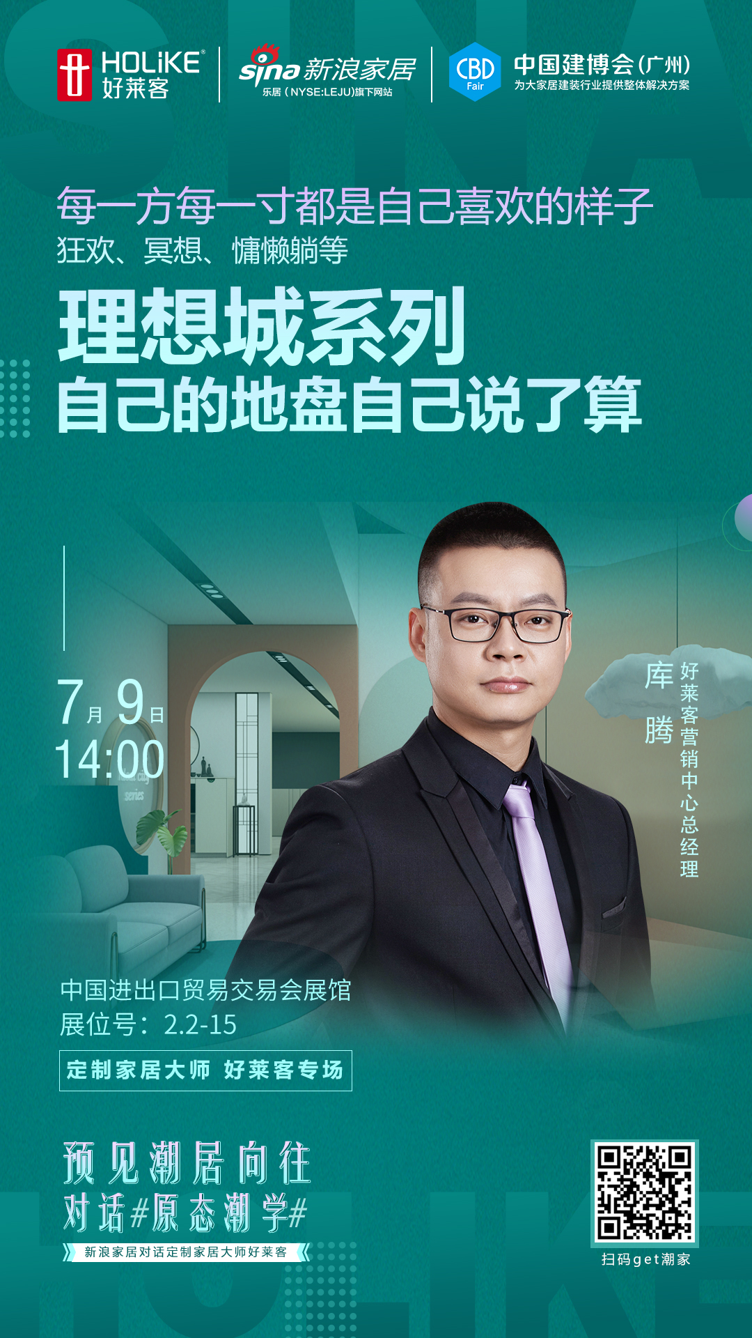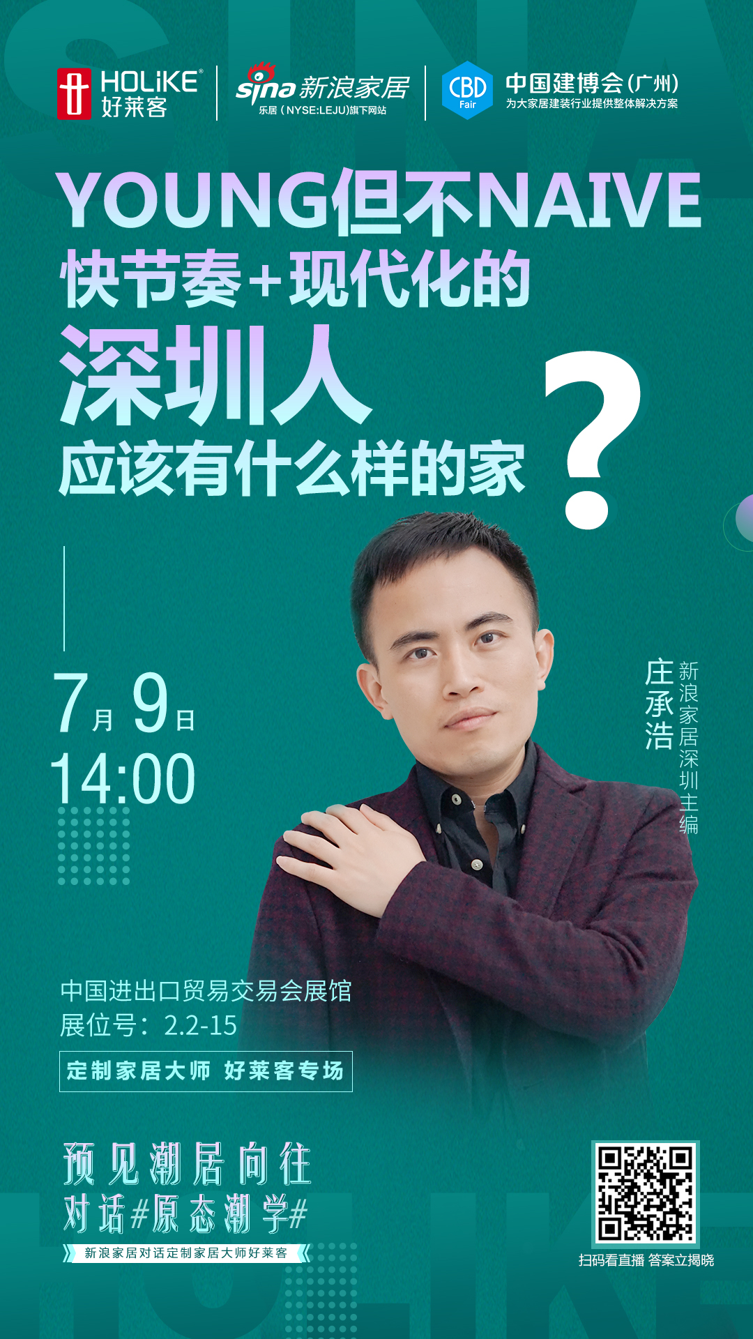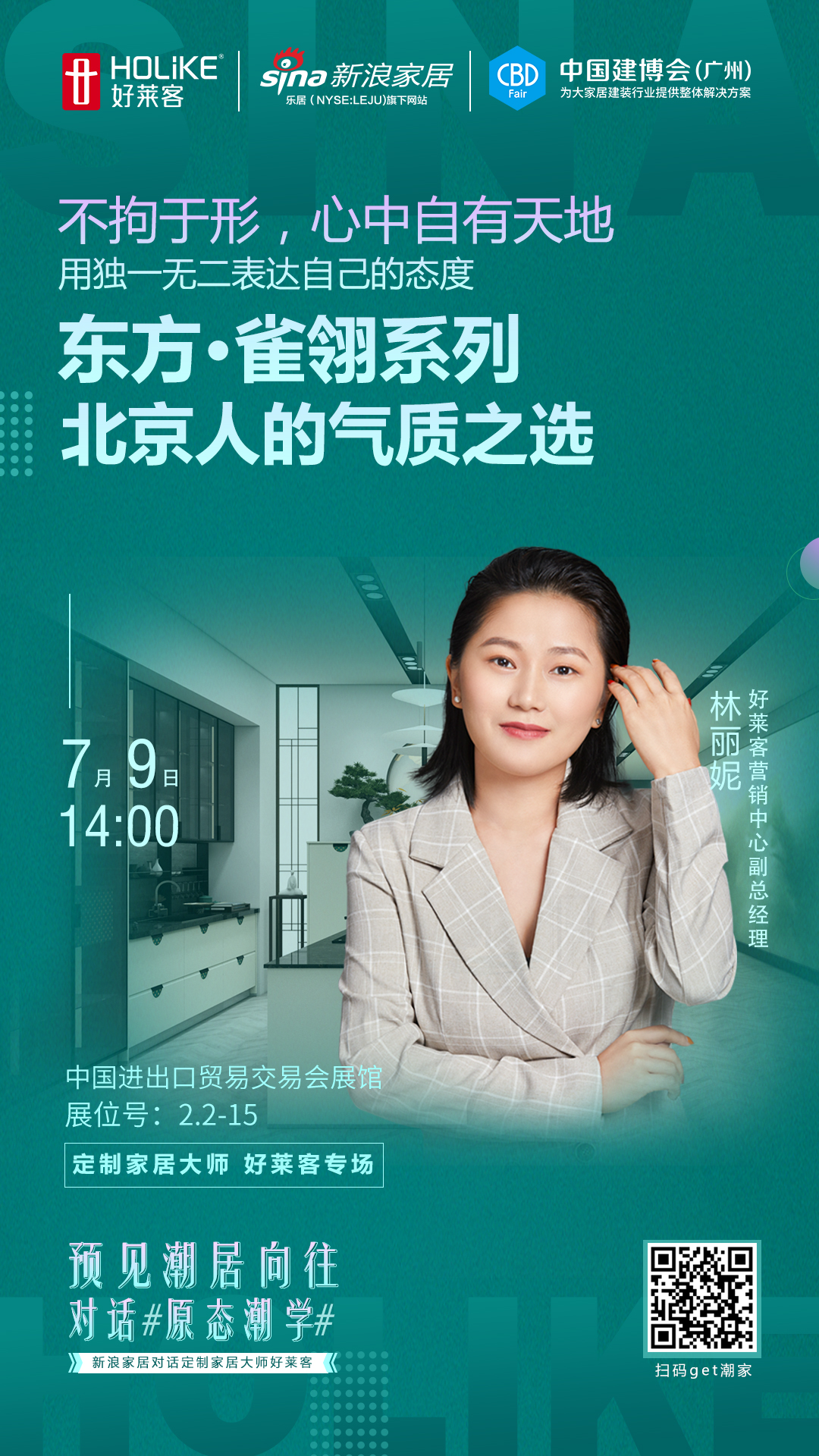 7月9日下午,定制家居大师好莱客将携手新浪家居4大主编,打造此次建博会特别策划——“预见潮居向往,对话#原态潮学#”活动。行业最强主编团对话定制家居大师好莱客品牌天团,共同探讨当今中国人的生活方式,洞见当代国人对家居的美好品质需求,并对好莱客4大潮新品进行深入了解、全面测评。一场关于国人生活方式理念与原态潮生活哲学的思想碰撞,即将触发,不同的主编,不同的角度,不同的话题,不同的尖锐,定制大师好莱客现场如何见招拆招,大家拭目以待。