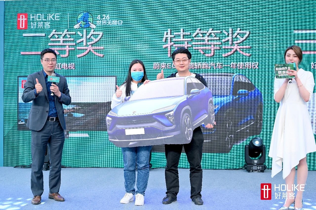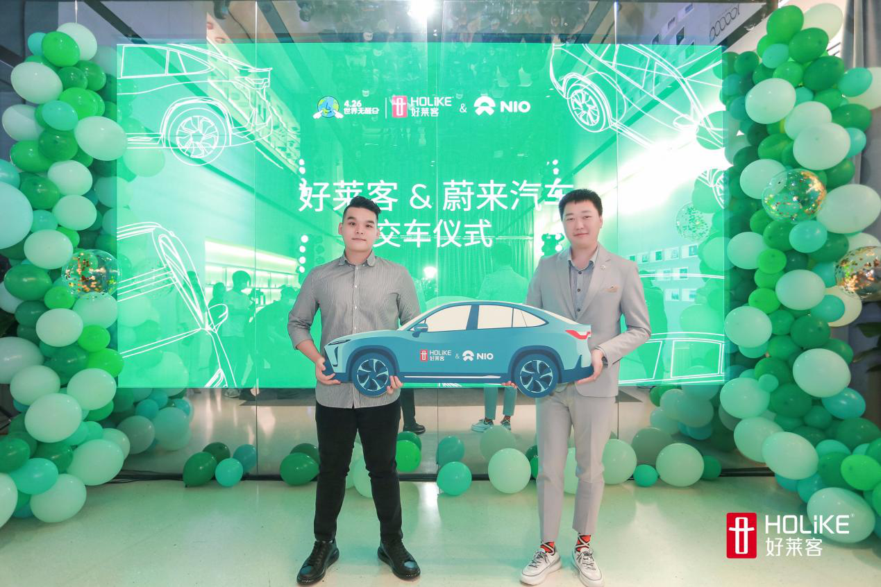 活动当天包贝尔还化身福利官,与好莱客合力宠粉,明星福利疯狂派送,现场抽取了一位好莱客幸运客户,送出蔚来EC6汽车一年使用权的重磅大奖。蔚来汽车成都区域副总经理杨帆更是亲自将全新蔚来EC6交付到好莱客代表、副总裁沈竣宇的手上,传递的不止是汽车,还有好莱客和蔚来共同为空间环保努力的决心。