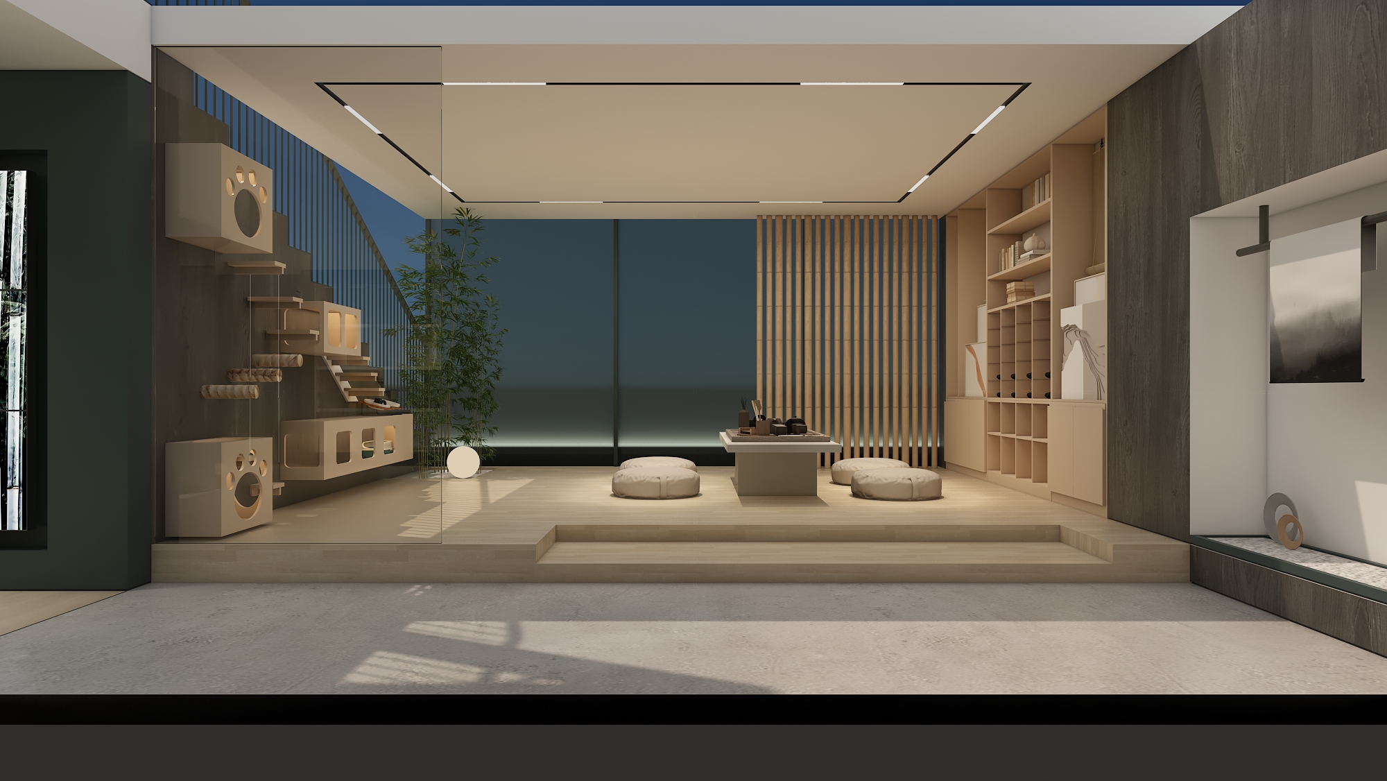 素杏杨木花色搭配 LOGO凯曼石,巧妙融和喵窝别墅,将大自然的色彩揉进生活里,以一室纯粹治愈时光,诗茶相伴,有猫为伴,何必远方。