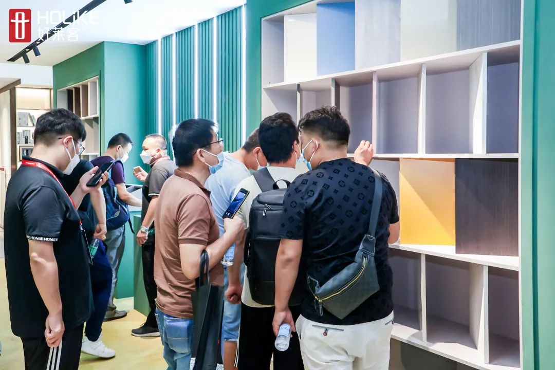 值得一提的是,好莱客今年6月重磅上市六大潮新品,以“探索·家的N次方”为概念,把自然元素作以延拓,为消费者解锁家的无限可能。#原态芯城#的不同空间场景中,结合了此次新品的不同亮眼元素,包括原木色彩、天然材质、品牌专属LOGO压纹等,实现了美学、功能、健康的融和,有颜有品,现场吸引了众多参展观众停足围观,并受到一致好评。