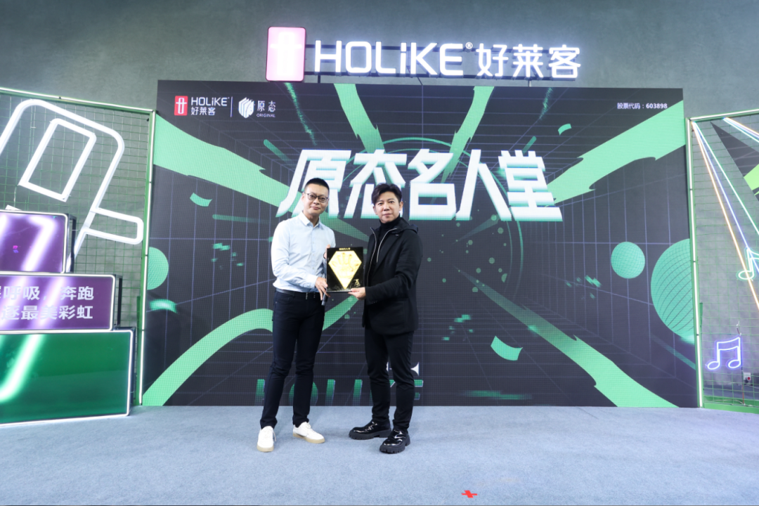 值得一提的是,作为本次“原态潮Live,奔跑双11”重磅嘉宾,此次海泉老师来到现场还有一项重要任务,即作为好莱客原态推荐官,正式入驻好莱客原态名人堂,成为第四位入驻名人堂的潮明星,为原态健康家居奔跑助力。