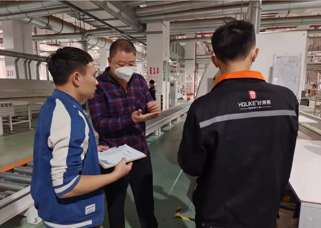 与此同时,好莱客总部品质控制部也联合售后管理组、工艺部、基地品质部组成联合稽查小组,深入各大基地开展封边工艺、质量联合稽查活动,对基地生产现状及各项机制落实情况进行稽查,确保封边加工工艺规范的有效执行,保障封边质量提升专项行动的顺利进行及产品封边质量的全面提升效果。