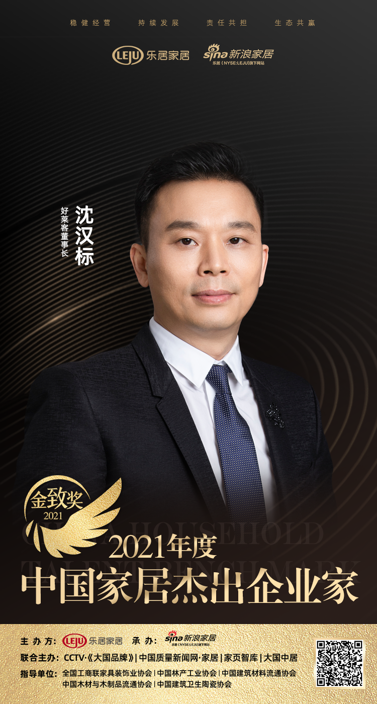 在中国家居发展的历程中,创造就业岗位、引导产业创新、带动行业发展少不了那些敢为人先、开创先河的优秀企业家。好莱客董事长沈汉标先生成功创立了好太太、好莱客两大行业标杆品牌及上市公司,领导企业锐意进取,用工匠精神成就消费者对家、对美好生活的向往,此外更是带领企业积极承担社会责任,因行业贡献和热心公益,先后获得了“广州十大杰出青商”等荣誉称号,在此次评选中沈汉标先生成功夺得《2021中国家居杰出企业家》奖项,可谓实至名归。