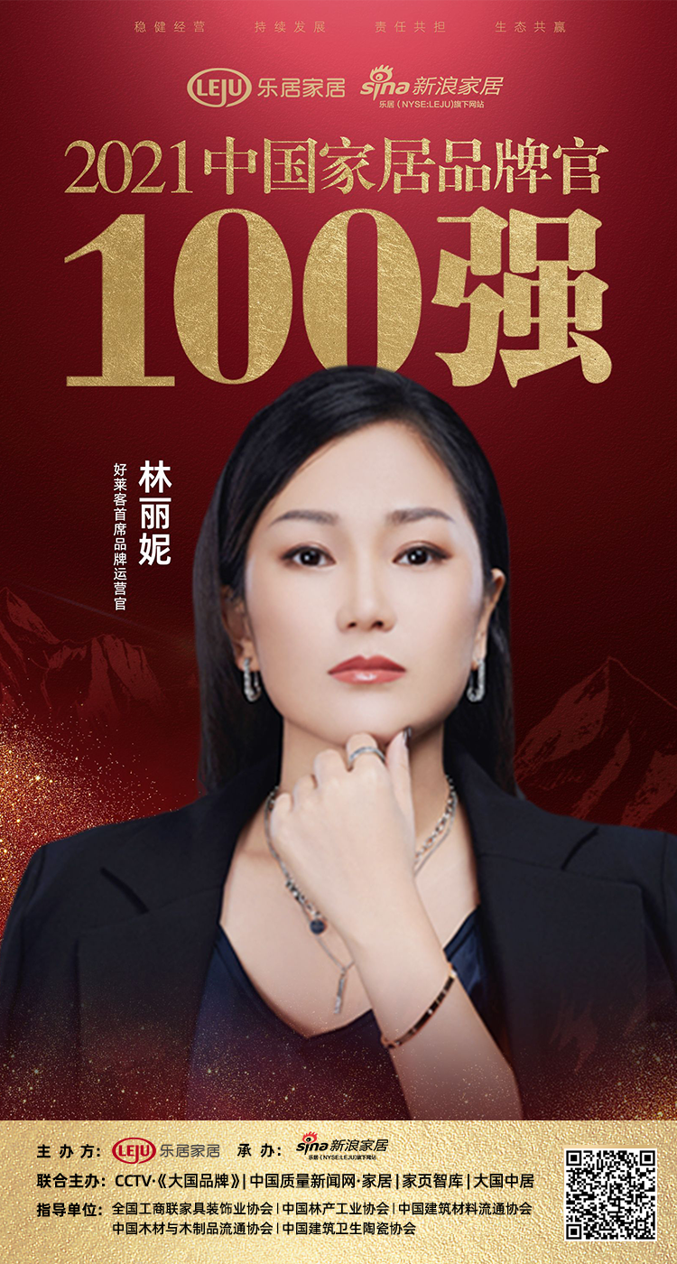 本届金致奖好莱客营销中心总经理库腾先生和首席品牌官林丽妮女士成功双双入选《2021中国家居品牌官100强》,是行业和市场对两位在品牌成长和营销上所取得成绩的高度肯定。