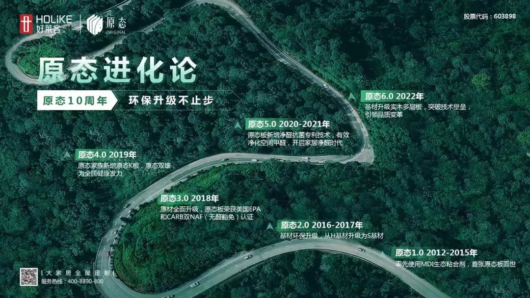 产品是企业的生命线,好莱客致力于原态系列环保产品的研发,这也成为了好莱客打造品牌差异化的核心武器。自2012 年首张原态板面世至今, 好莱客原态系列十年间共推出六代原态环保产品: