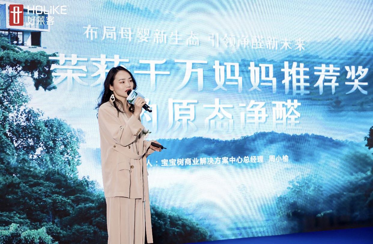 好莱客原态产品凭借领先的环保标准和硬核的净醛实力,深受千万宝妈们的喜爱。宝宝树商业解决方案中心总经理周小榆女士,从多维度阐述了母婴人群选用环保家居产品的必要性。好莱客原态净醛产品连续2届入选宝宝树金树奖,成为千万妈妈推荐的产品,为更多母婴家庭带去更高质的环保家居新生活。