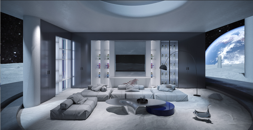 迷笛系列设计灵感来源于电影《星际穿越》,将星际宇宙的科幻感与酸性设计风格的视觉美感,融入家居空间,以“酸性未来”的星际旅行空间为载体,通过光影美学加强设计形体的空间关系,实现虚拟与现实的个性切换,带来科幻未来主义氛围。
