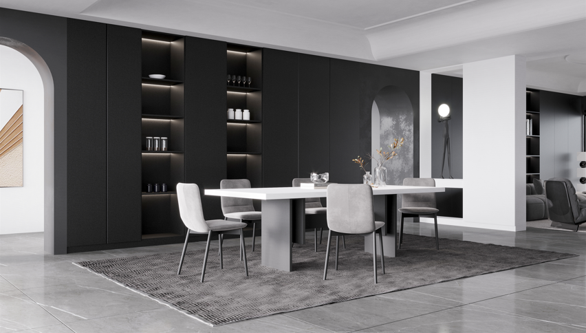 以“逃离快都市,造一座属于你的慢时空”为设计灵感,由钢琴黑白琴键跳跃形态触发设计共鸣。跳脱传统的认知,高级黑的质感与酷飒,纯粹白的明亮与张扬,经典黑白色系重塑新的慢托邦理想国度。玩转线面形态,精心雕琢个性门型,幻变出一个自由的创想家居空间。