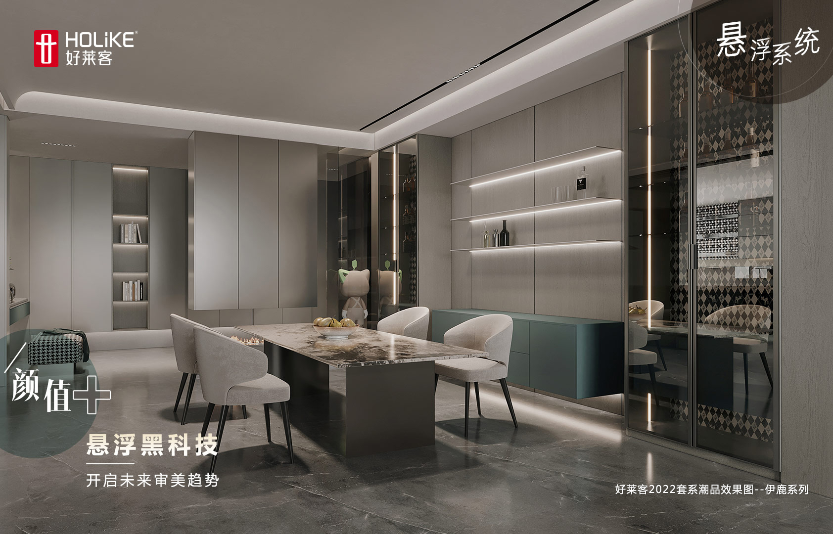 好莱客悬浮系统凭借独特优势,全面解决定制行业在护墙、柜体中安装、链接、收口的安装难题,并对未来可能存在的问题灵活处理。悬浮黑科技,全面开发墙面空间利用,开启未来审美趋势。