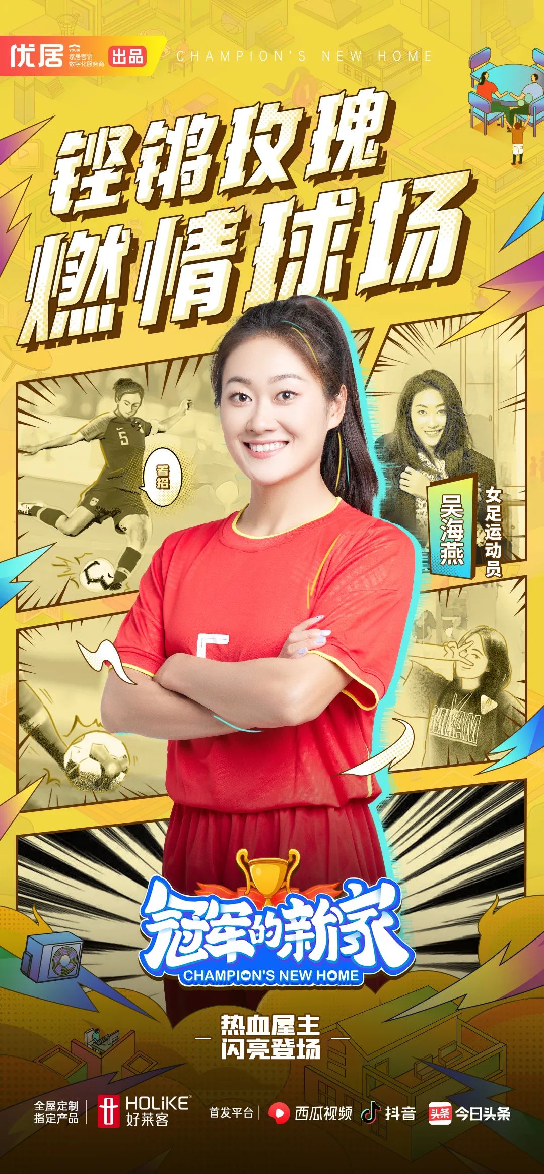为实现个性新家的所有期待,优居出品《冠军的新家》第二季第一期邀请到女足运动员吴海燕作为新屋主,好莱客以全屋定制指定产品的合作伙伴身份,联手设计名师石伟达老师一起为吴海燕打造个性十足的原态潮家。