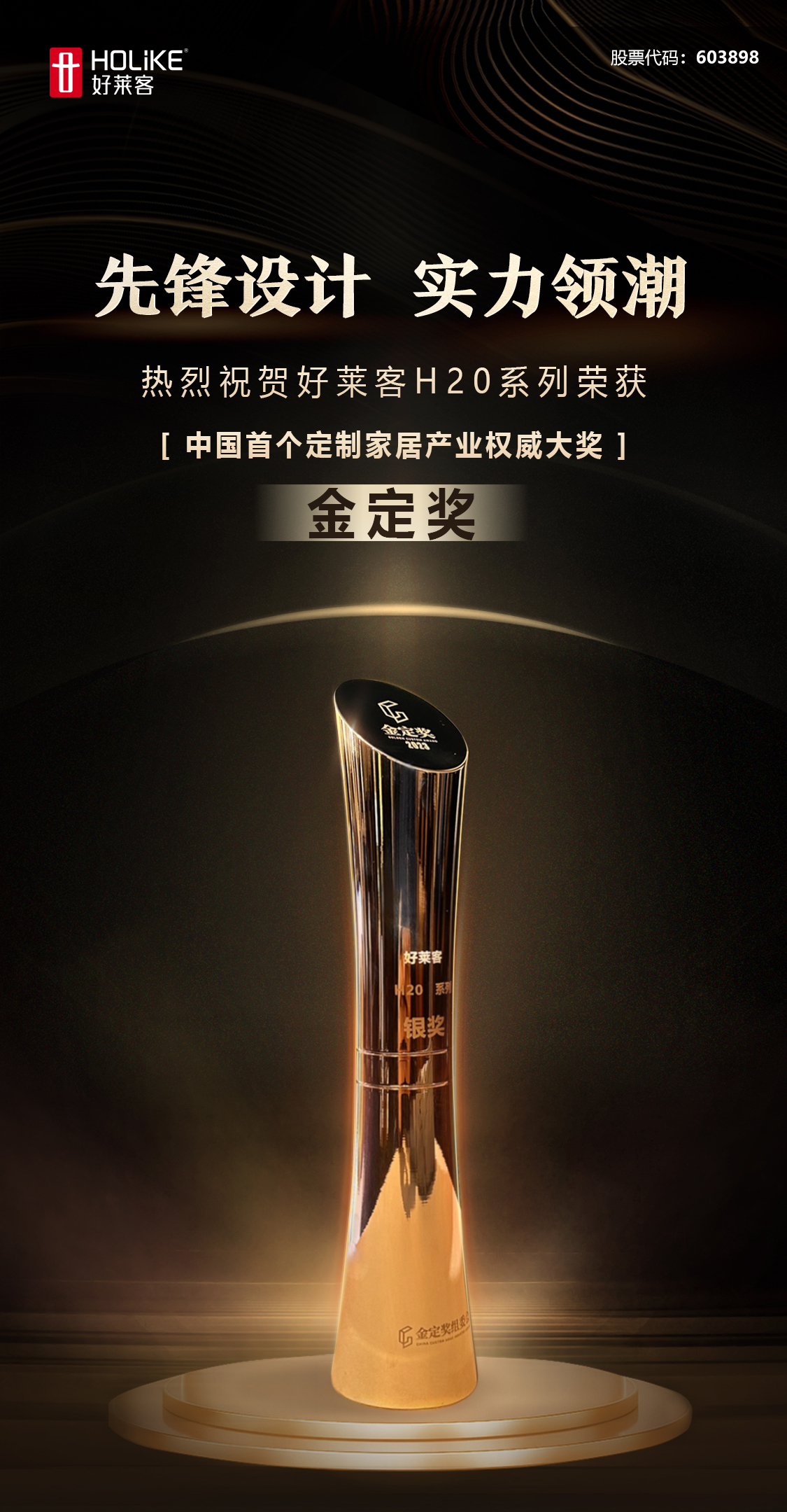 在展会期间,由广东省定制家居协会、广东衣柜行业协会两大权威协会指导,金定奖组委会特别发起的“金定奖·2022-2023中国定制家居产业大奖”评选颁奖盛典成功举办。现场,H20系列凭借创新的设计工艺、高颜值的外观、复古的美学表达和前瞻性的环保属性,荣获中国定制家居行业首个专业权威大奖——金定奖,这不仅是权威协会对大师之作的高度肯定,也是对好莱客潮基因的最大认可,好莱客以先锋设计实力引领家居潮设计趋势。