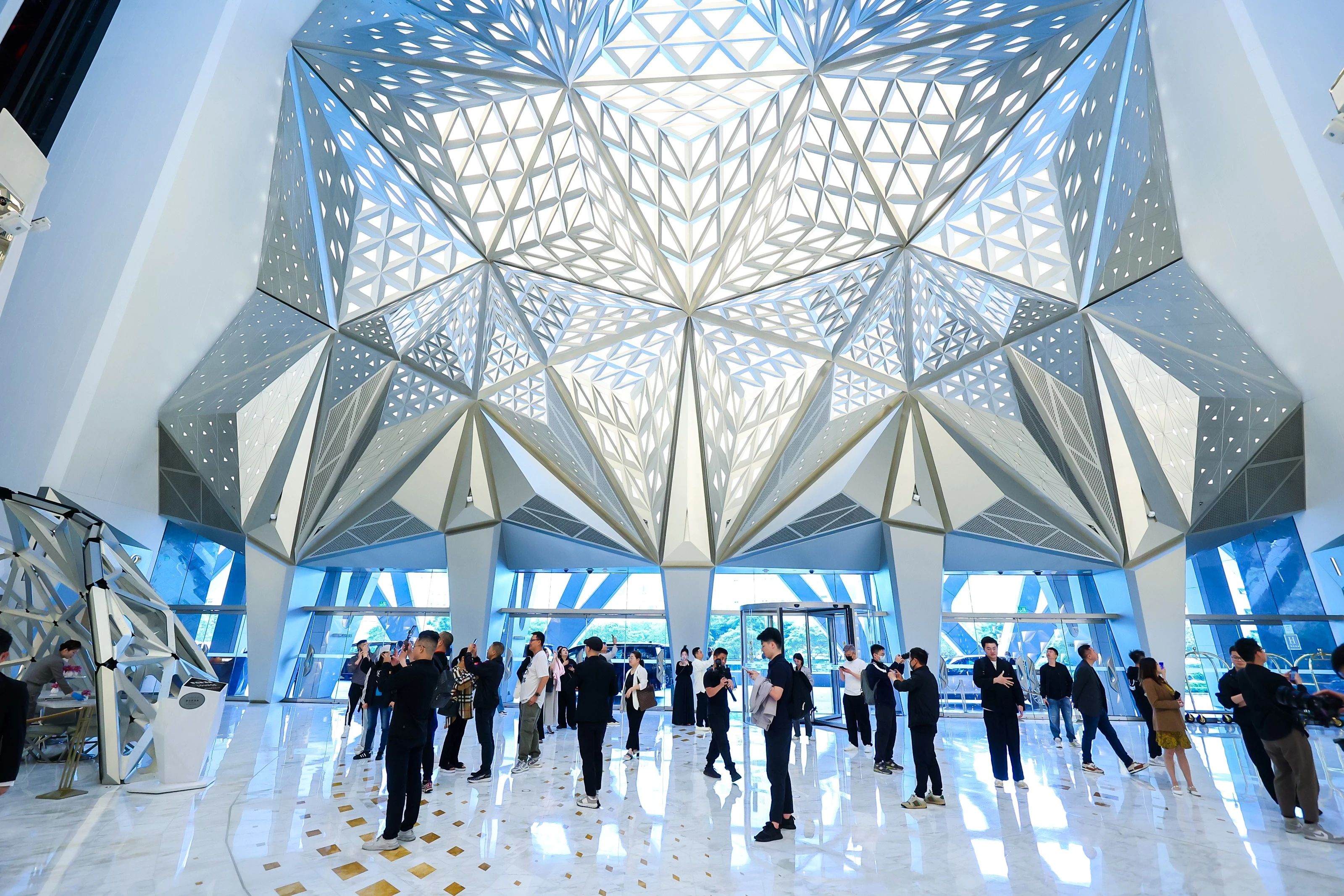 澳门新濠天地摩珀斯酒店则呈现出另一个不同的设计故事。该酒店以希腊神话中的梦神 Morpheus 为名,由已故著名伊拉克裔英国建筑师札哈·哈蒂主笔设计,是全球首座采用自由形态外骨骼结构的摩天大楼。在独特的建筑与设计中,设计师们领略了不一样的澳门风貌。