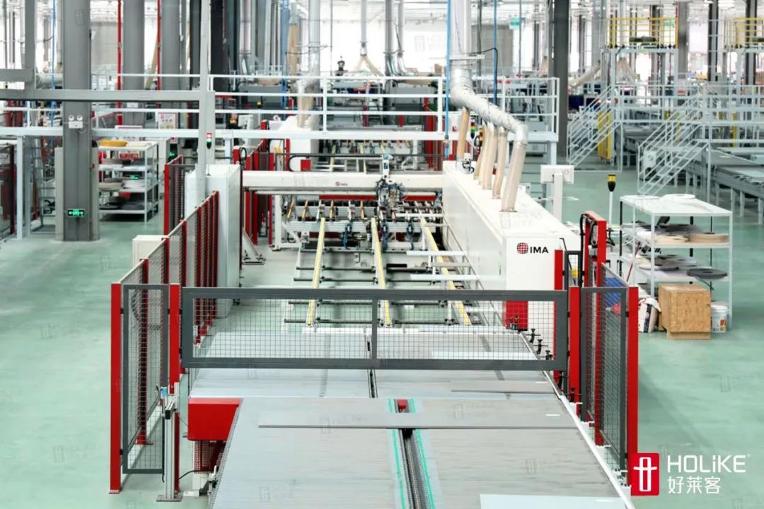 汉川基地配备的IMA伊玛工业4.0生产线拥有封边单元专用电脑,能够快速输入数据信息,其独有的涂胶操作终端可显示用户和错误信息,双硬盘备份一键切换还能减少停机时间,使得封边更高效;并且通过X30系统动态生成板材间距,确保了板件的平行度、直角度、精确度,再搭配国际先进水平的“KFA磁悬浮控制跟踪倒角技术”,全工作单元伺服精准控制,封边条柔性快速切换,封边品质再次升级!