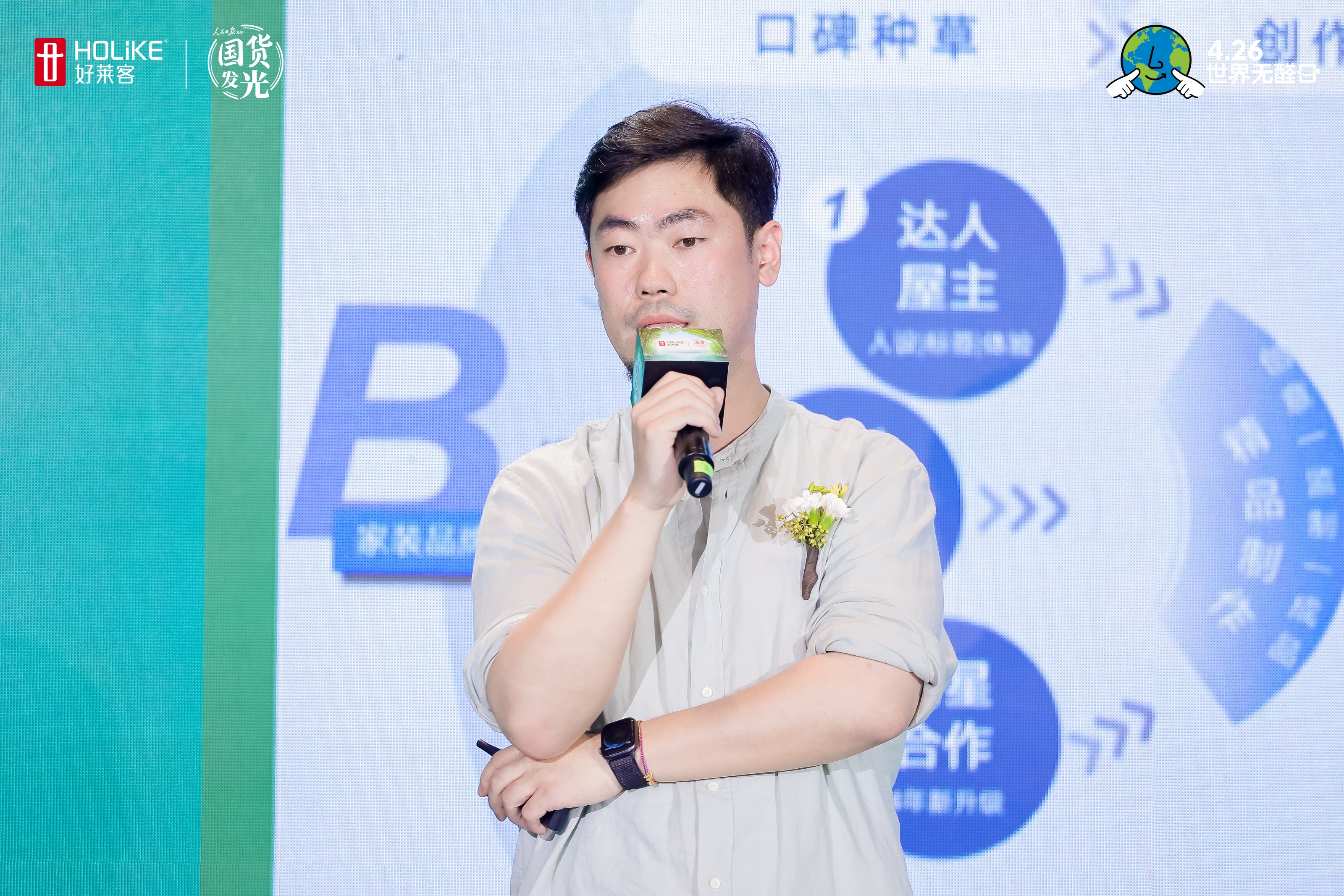 发布会现场,好莱客营销中心总经理刘思翔现场解读惠民重磅政策将气氛推向新一轮的高潮!聚焦惠民生,好莱客携手人民日文创派发“1亿健康家消费券”的同时,重磅上线39800元奢颜整家套餐10周年纪念版,更有限时超低价升级全屋净醛、抢限量全国儿童房免费升级原态净醛竹板权益、及当晚抽直播免单大奖等426专属加码福利,为健康品质家居加码,真正实现高品质、全净醛、真惠民。