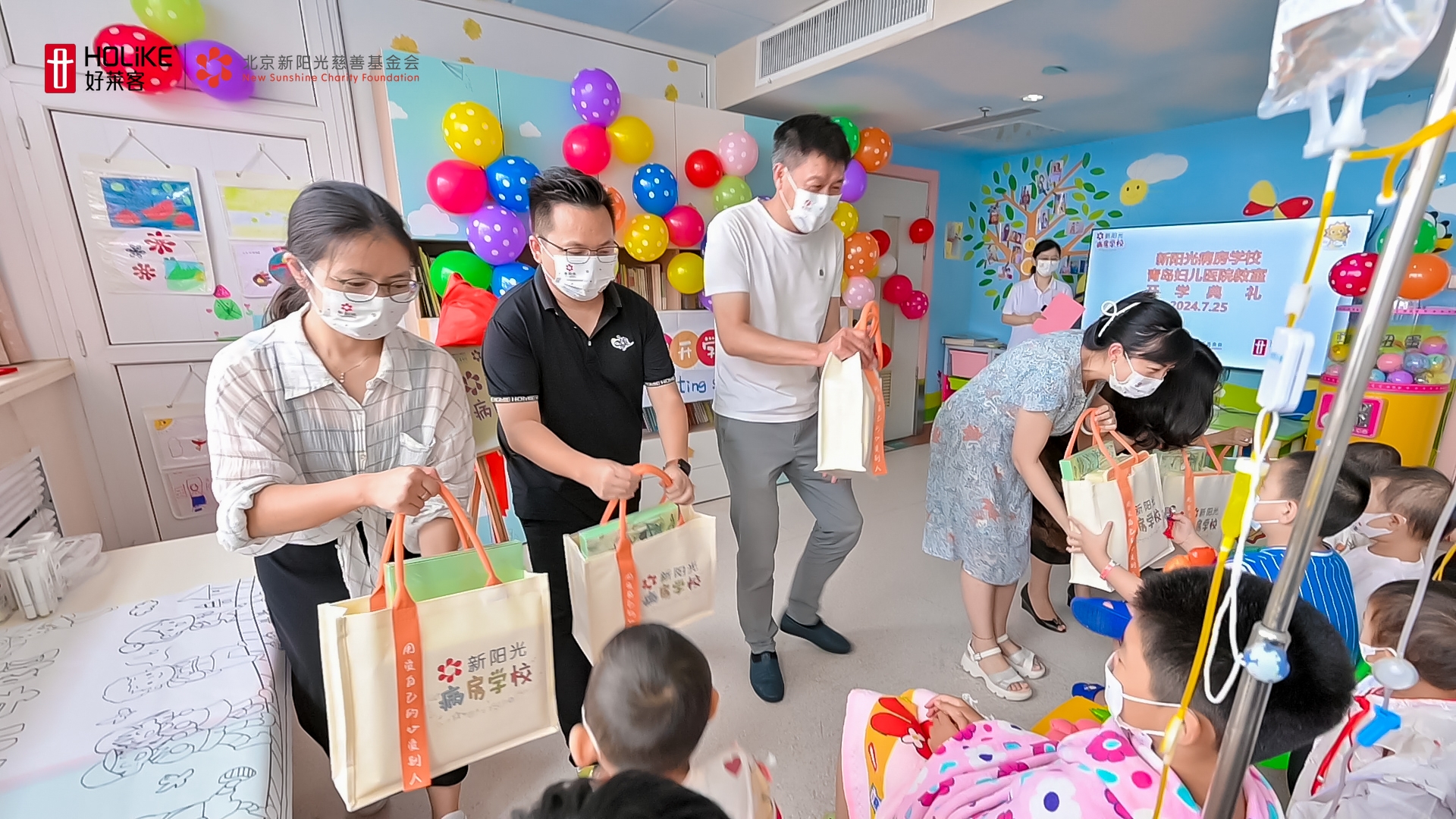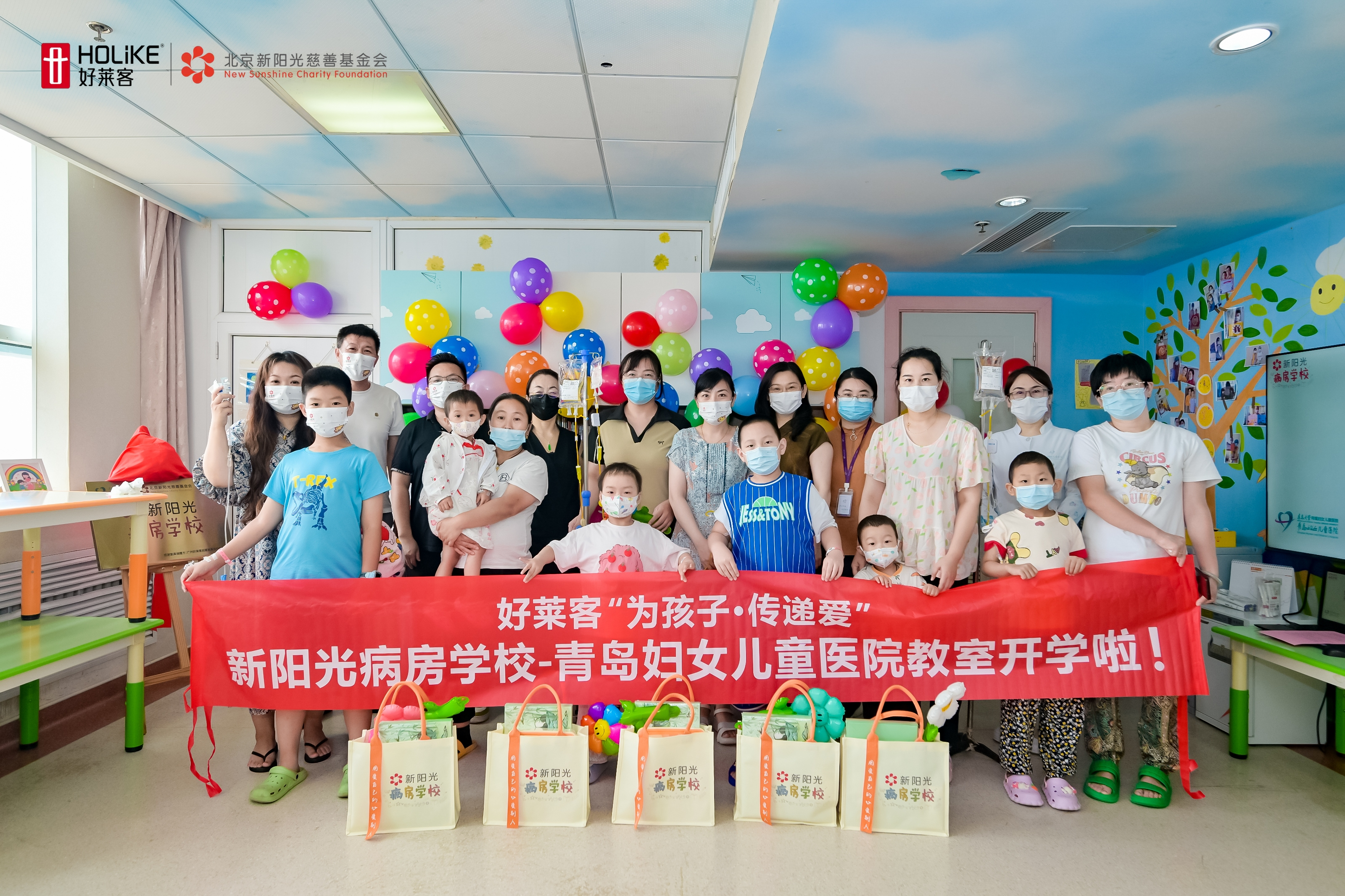 在这个阳光明媚的夏天,好莱客原态公益脚步又迈向一座新的城市。7月25号,好莱客与北京新阳光慈善基金会携手打造的青岛市妇女儿童医院新阳光病房学校迎来了开学典礼,青岛市妇女儿童医院副院长工会主席高岩女士、青岛市妇女儿童医院血液科副主任张磊先生、好莱客鲁东中心经理李根先生、好莱客青岛总经理孙胜军先生及北京新阳光病房学校负责人王然女士共同出席了本次活动,并与在场的其他爱心人士共同陪伴孩子们度过了一个愉快又难忘的开学典礼!