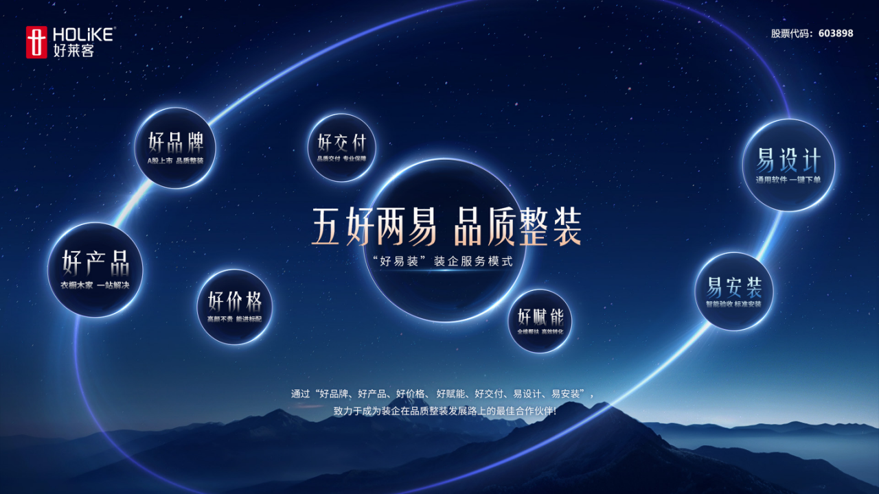 整装渠道重要性不言而喻。那么,做好整装的关键要素是什么?好莱客认为应从“品牌、产品、价格、服务”四大价值进行发力。2024年好莱客重磅发布“好易装”装企服务模式(一图读懂“好易装”装企服务模式)、重磅打造整装馆、以及针对终端安装交付能力提升展开全国性的专项行动,通过系统工具和丰富经验的赋能,帮助经销商精准捕捉与装企合作中的核心需求和关键痛点,全面提升整装业务渠道的建设与服务能力。
