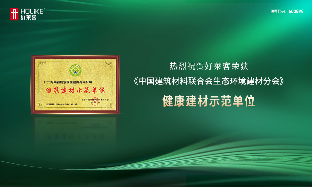 好莱客不仅专注于产品本身,同时还关注行业标准的建设,近年来积极参与人造板及其制品甲醛释放限量、挥发性有机化合物释放量分级、气味分级及评价方法等国家标准,和《装饰装修净化功能板材净化性能技术要求》、《抗菌防霉抗病毒木质板》等行业标准的编制/修订工作,引领行业健康升级。“健康建材示范单位奖”的获得,进一步认证了好莱客在健康建材领域中的努力及对国家环保事业战略的践行。