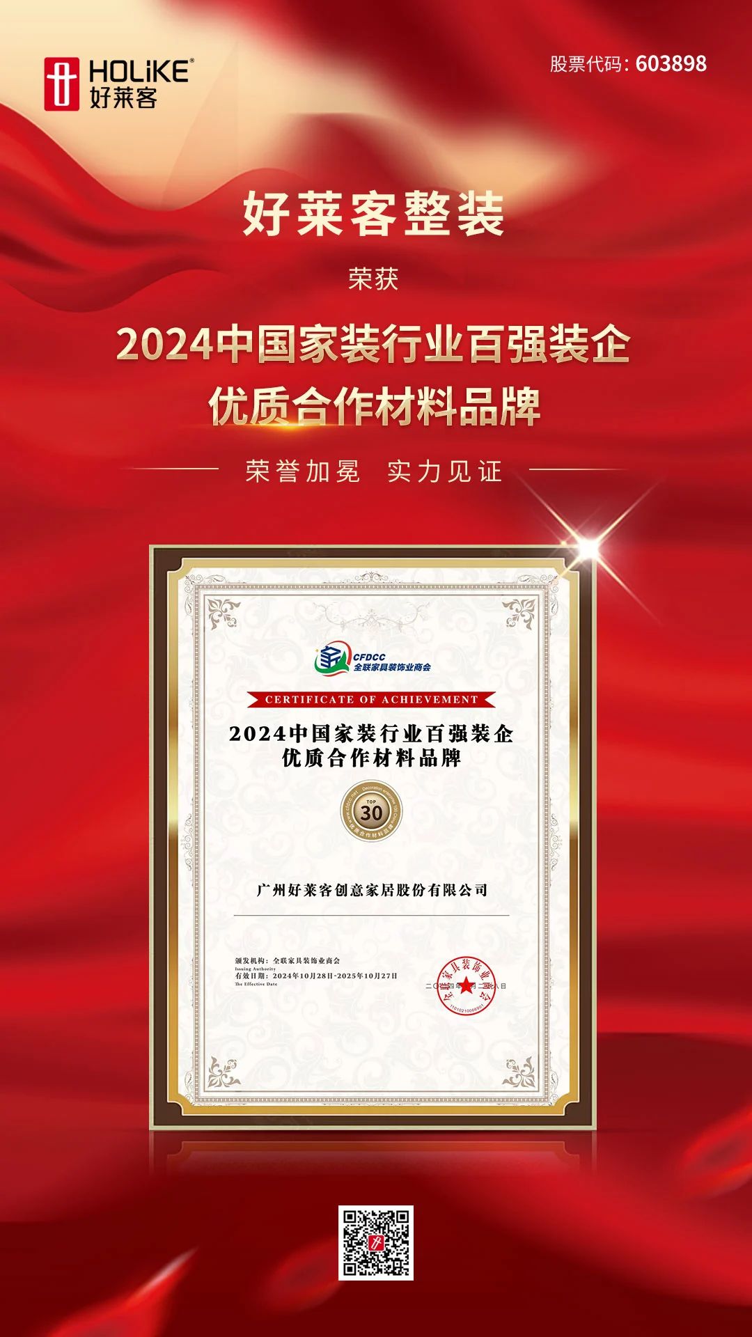 作为产业融合的重要一环,好莱客自2017年起布局整装赛道,多年来匠心建设渠道、构建差异化竞争力,开拓整装市场,以强大的品牌实力、全屋场景塑造的产品能力赋能装企,助力装企赢得市场竞争,荣获「2024中国家装行业百强装企优质合作材料品牌」。此次实力上榜充分体现了好莱客深受装企喜爱与青睐,向外界证明了好莱客品牌及产品的口碑和价值。