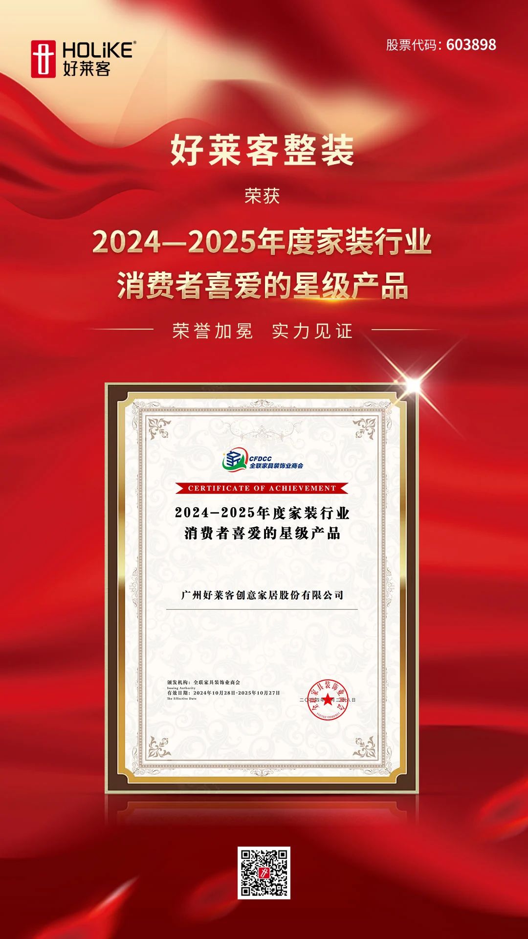 会上,好莱客凭借强大品牌实力、高质量产品以及创新技术水平,一举斩获「2024中国家装行业百强装企优质合作材料品牌」与「2024-2025年度家装行业消费者喜爱的星级产品」两项重量级大奖。