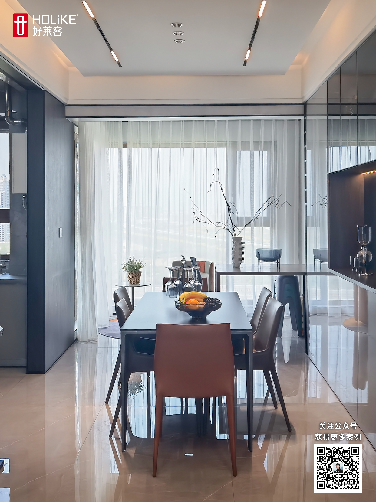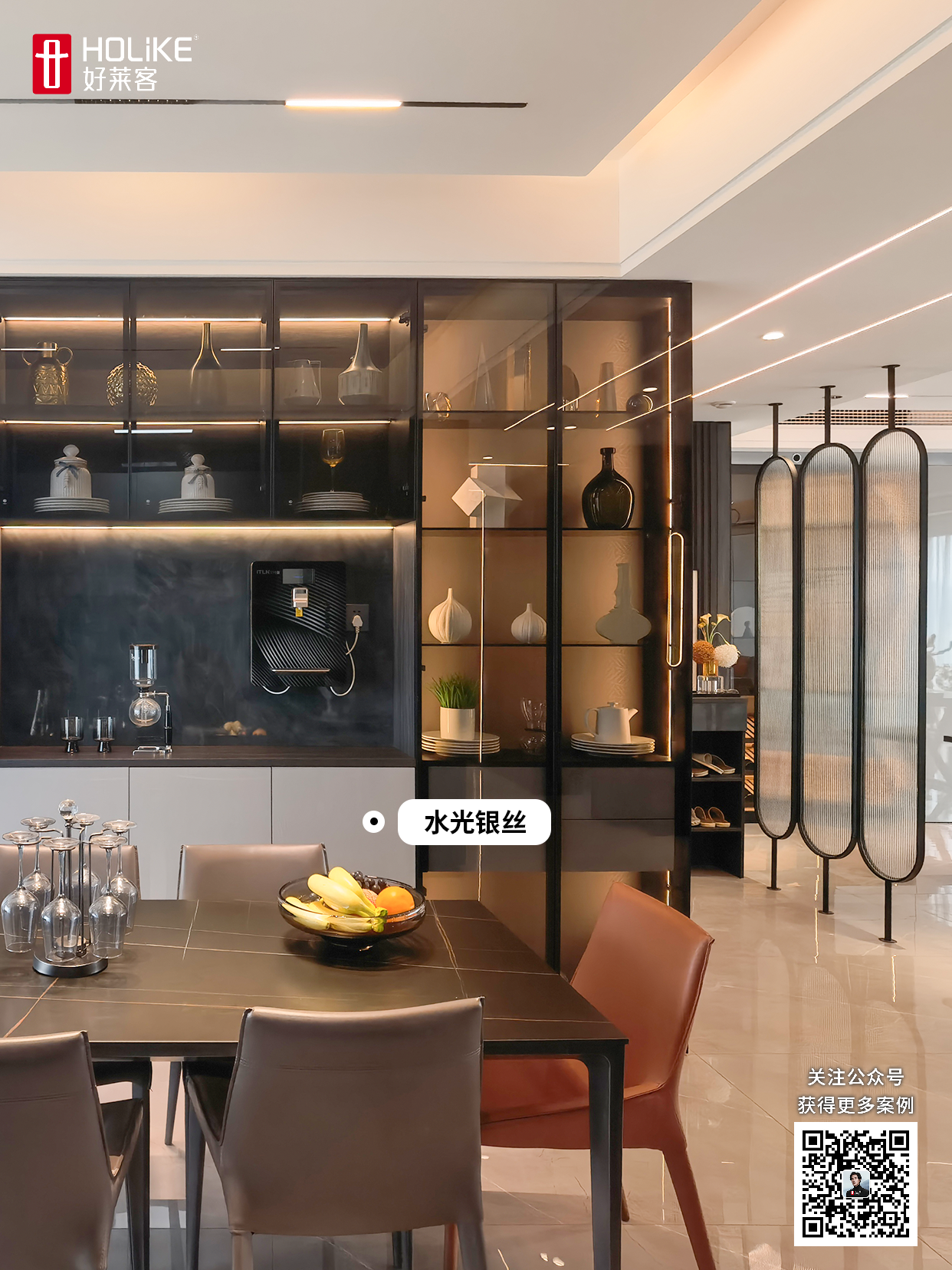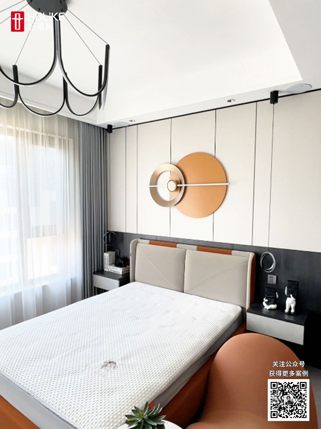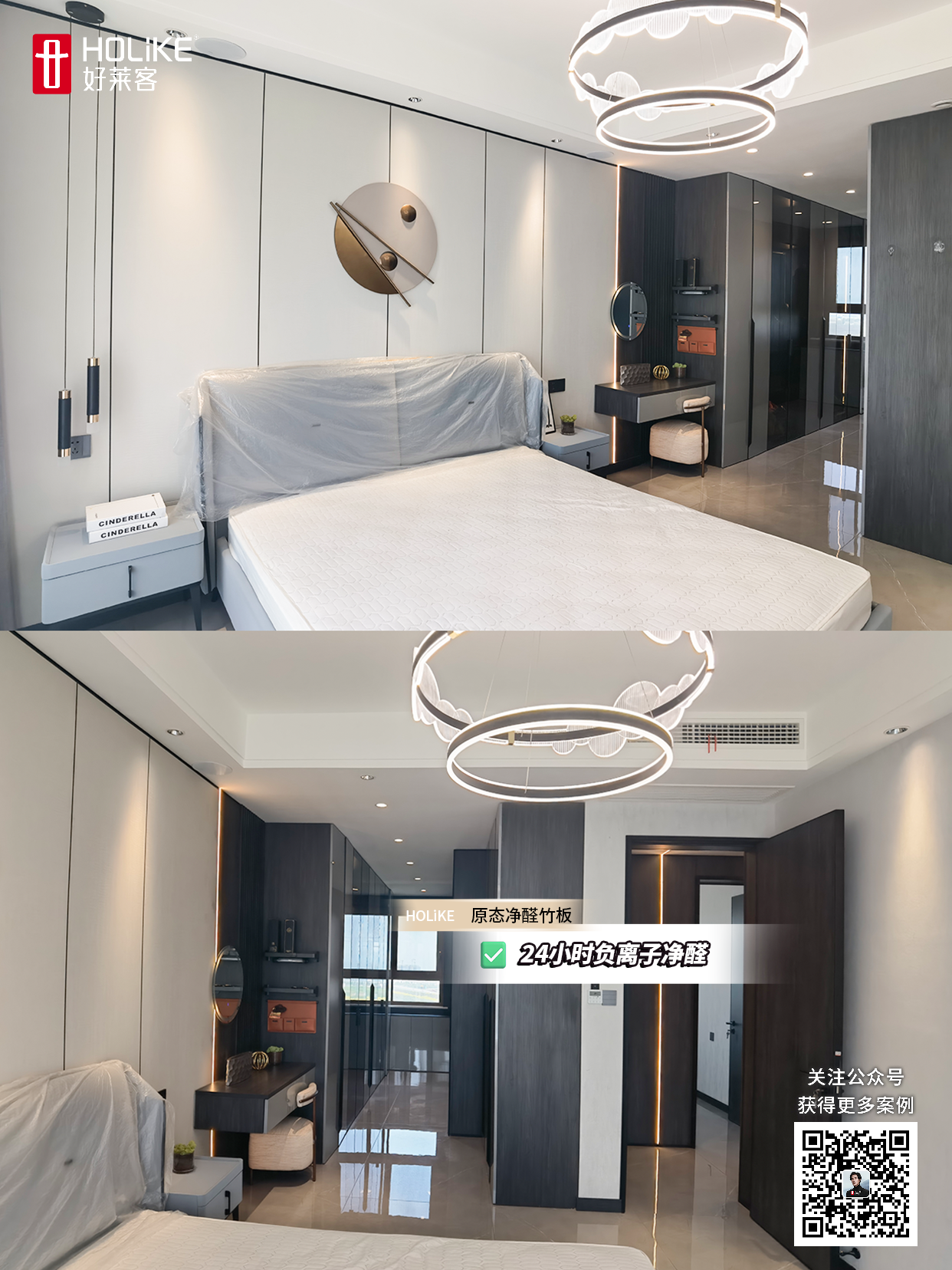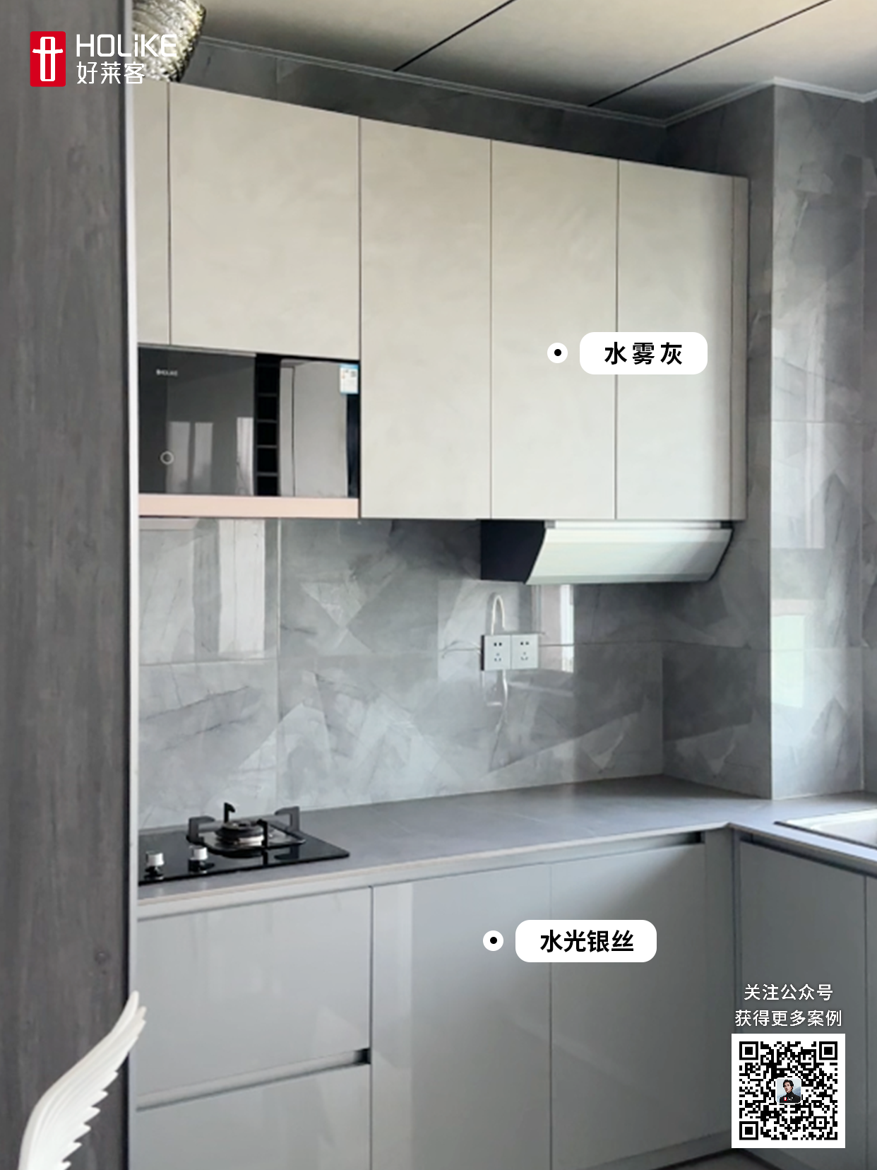 选用质感细腻的杏白+烟熏橡木花色护墙板
