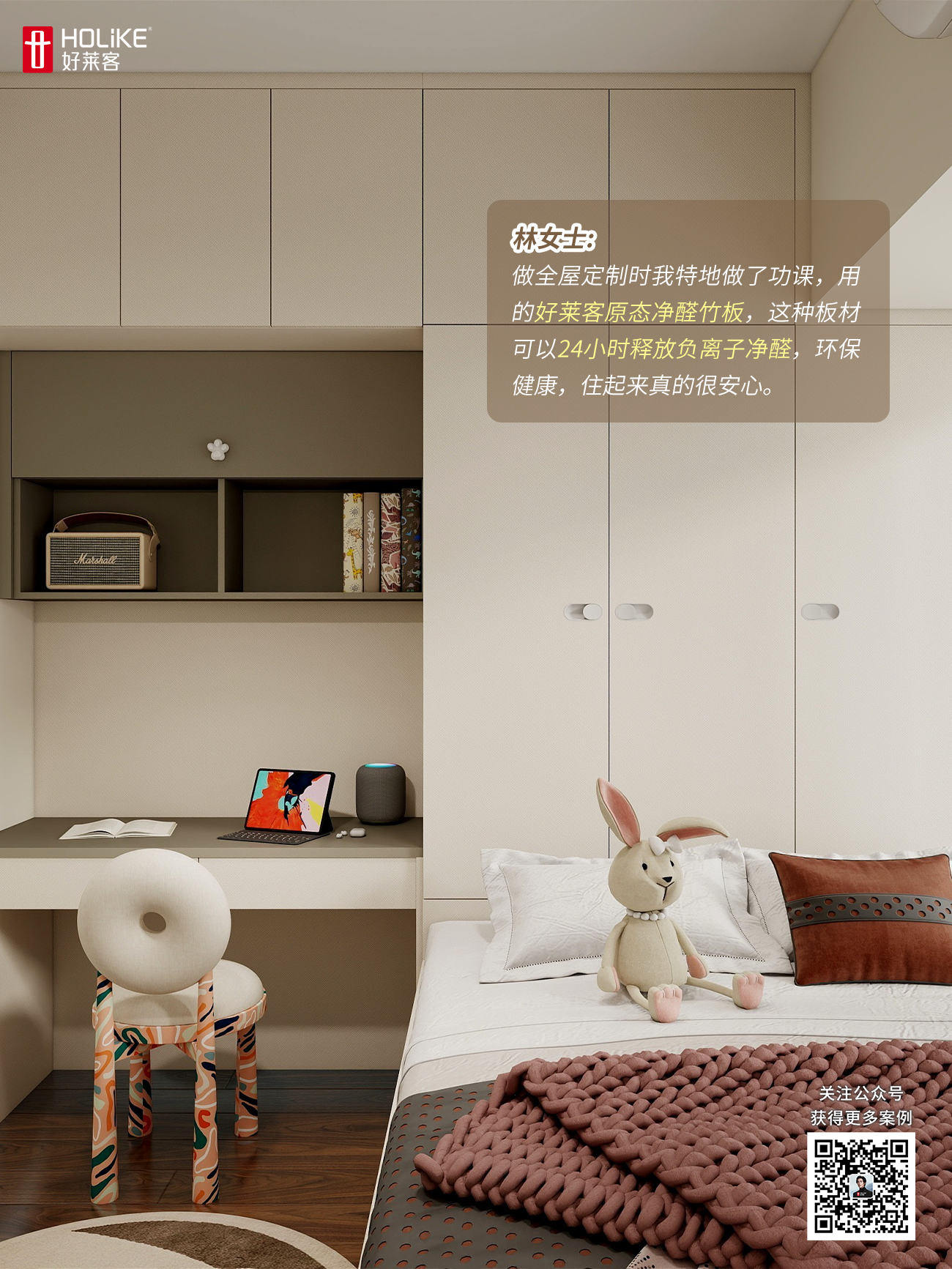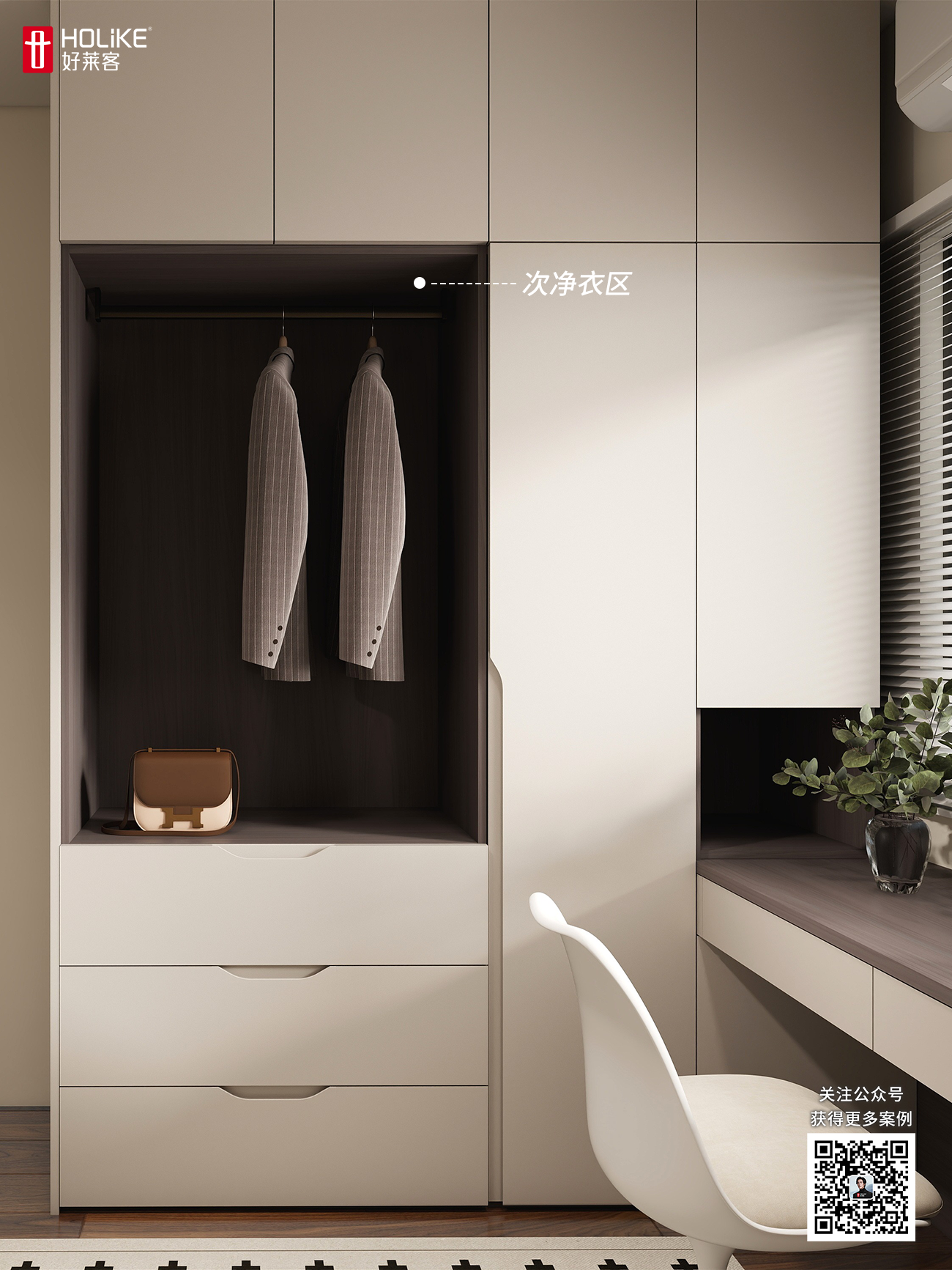 儿童房采用榻榻米+衣柜+书桌柜一体式设计