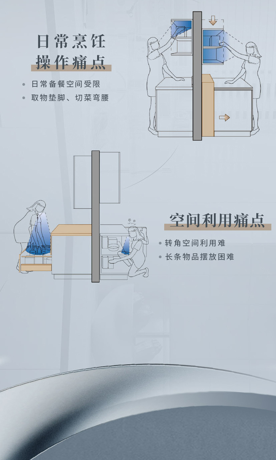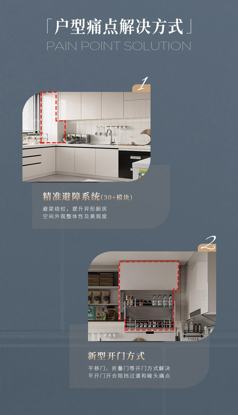 通过“户型痛点解决方式、人体工学设计、空间利用率提升”三个关键点入手解决厨房难题,